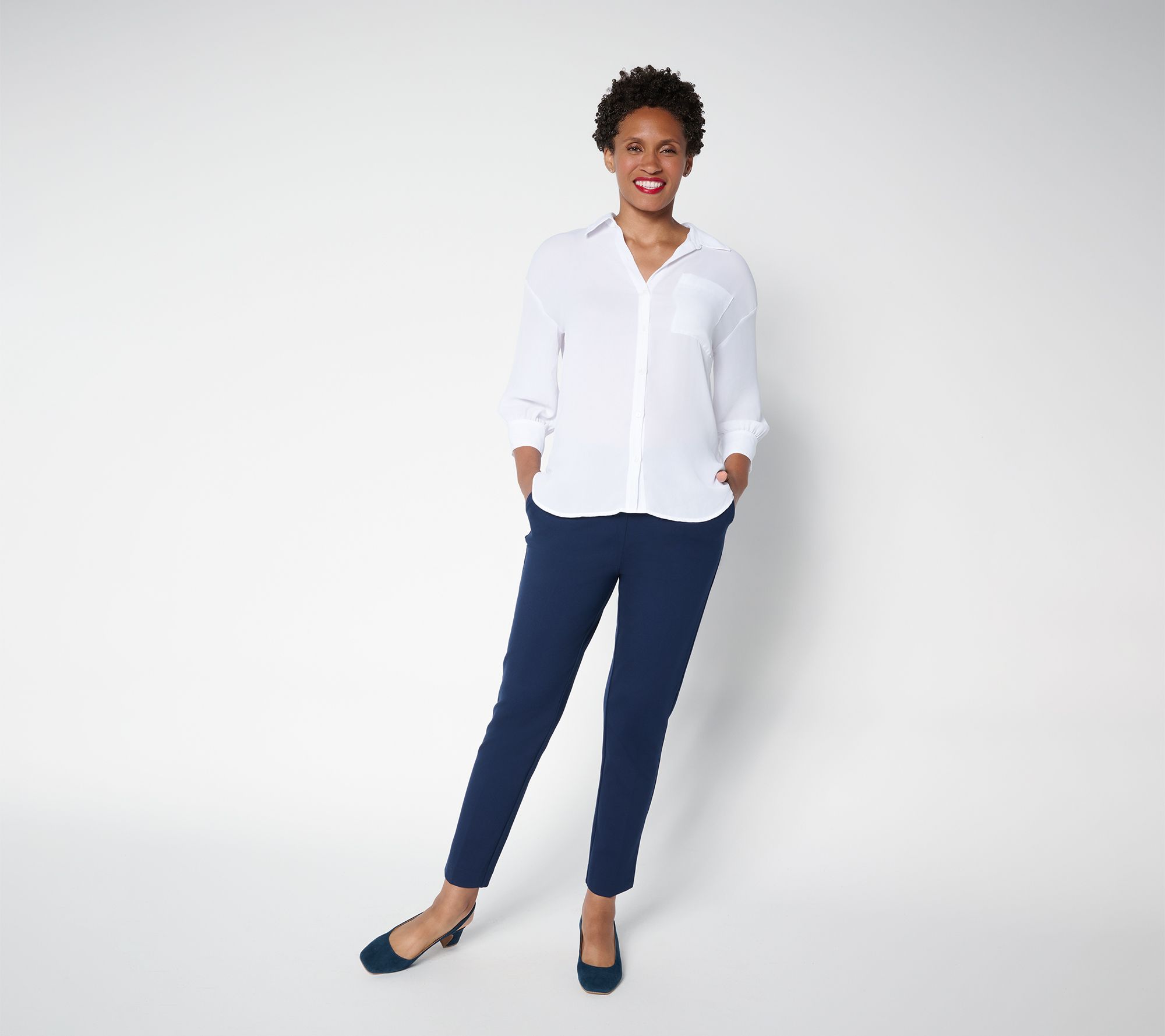 "As Is" Susan Graver Every Day Reg Smart Ponte 350 Slim Ankle Pants