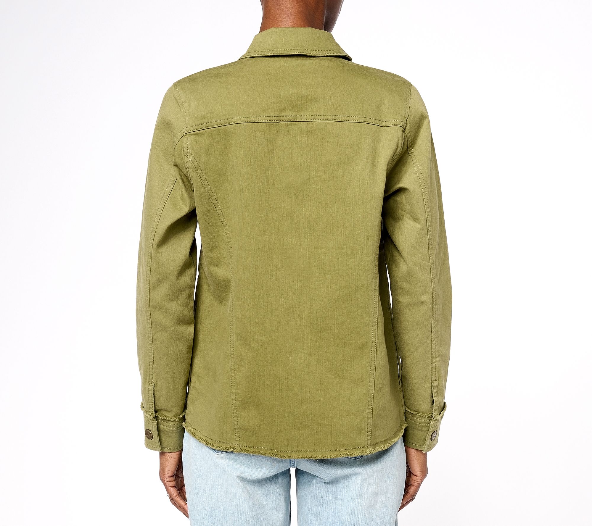"As Is" Susan Graver Fall Fashion Denim Jacket with Fray Trim