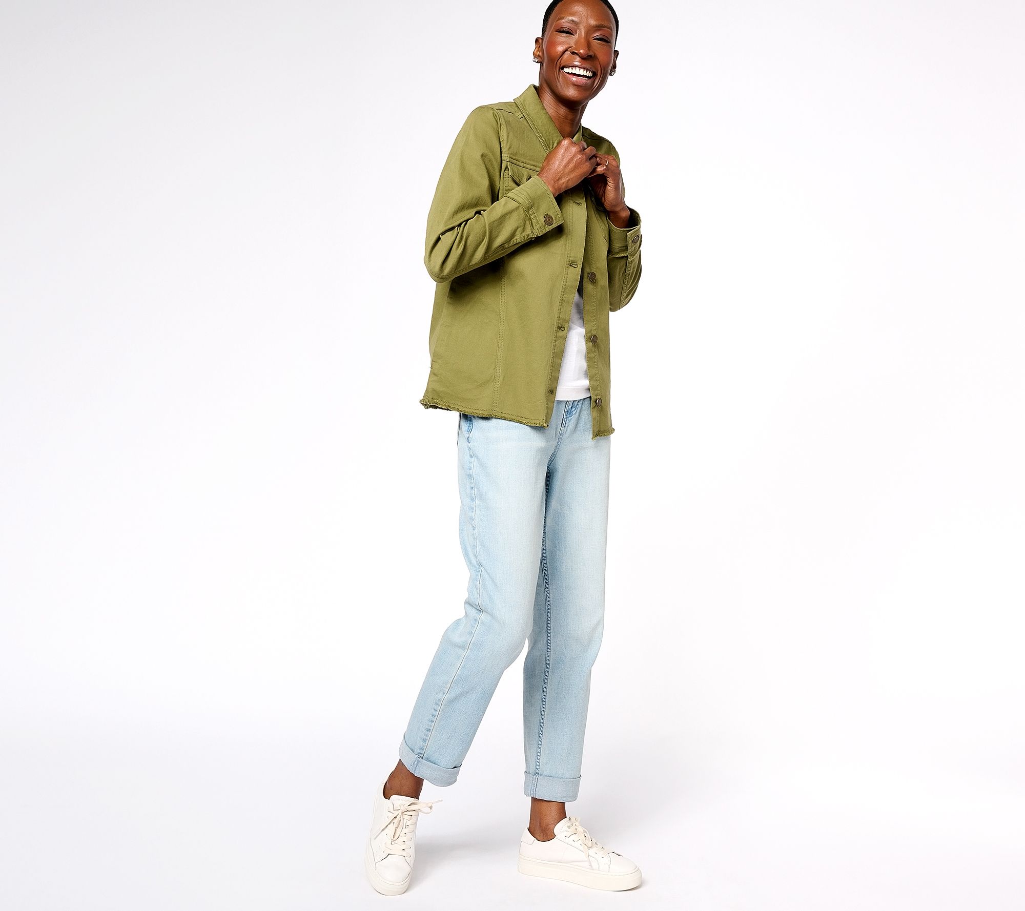 Give your outerwear a refresh with this fabulous denim jacket that easily transitions from season to season. This classic style gets reimagined with patch pockets and a frayed hem. From Susan Graver.