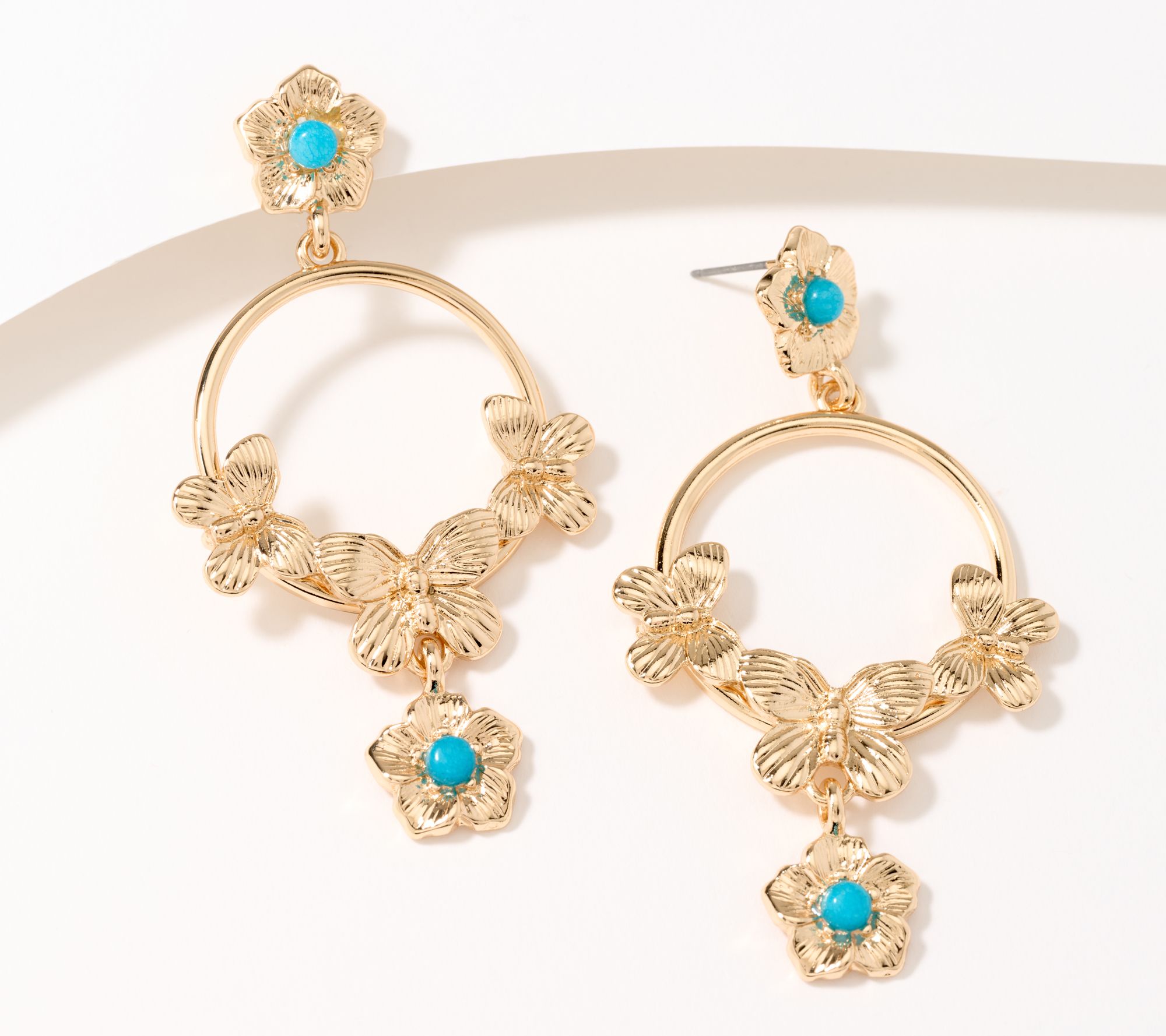 Celebrate warmer weather with these gorgeous drop earrings that feature floral and butterfly motifs. From Susan Graver.