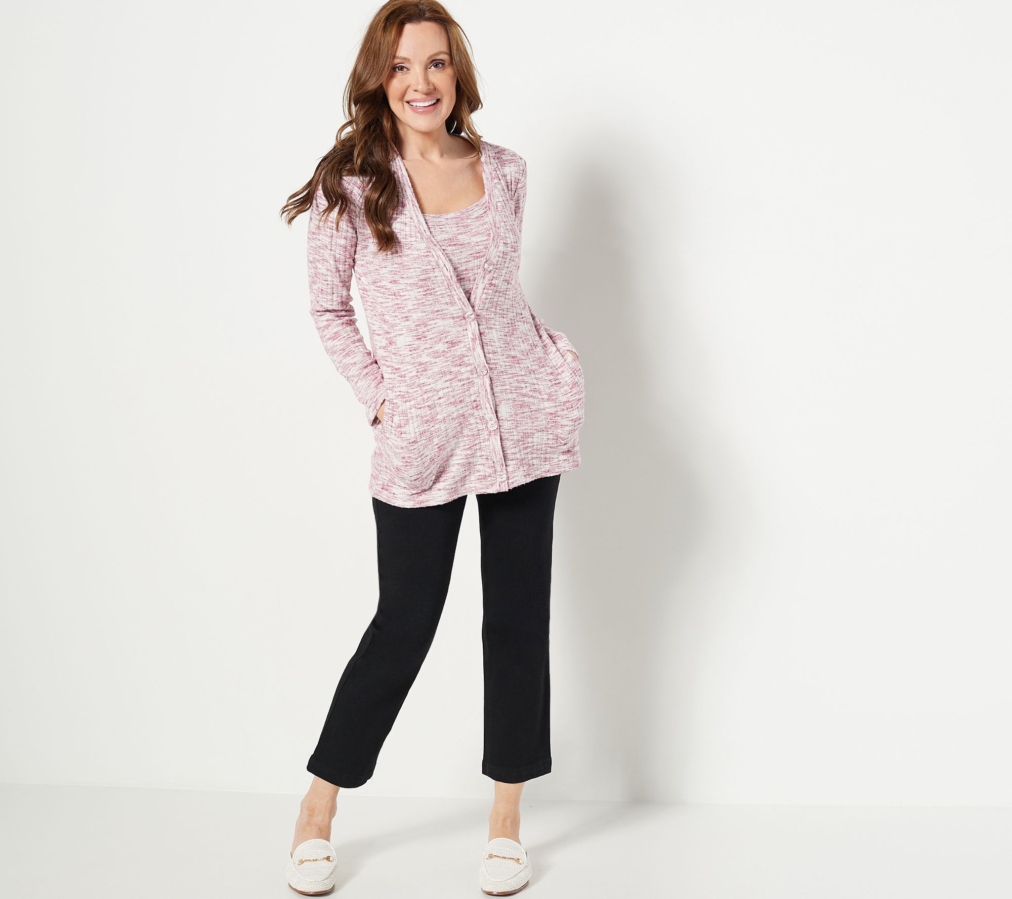 "As Is" Susan Graver Heather Brushed Rib Cardigan and Tank Set