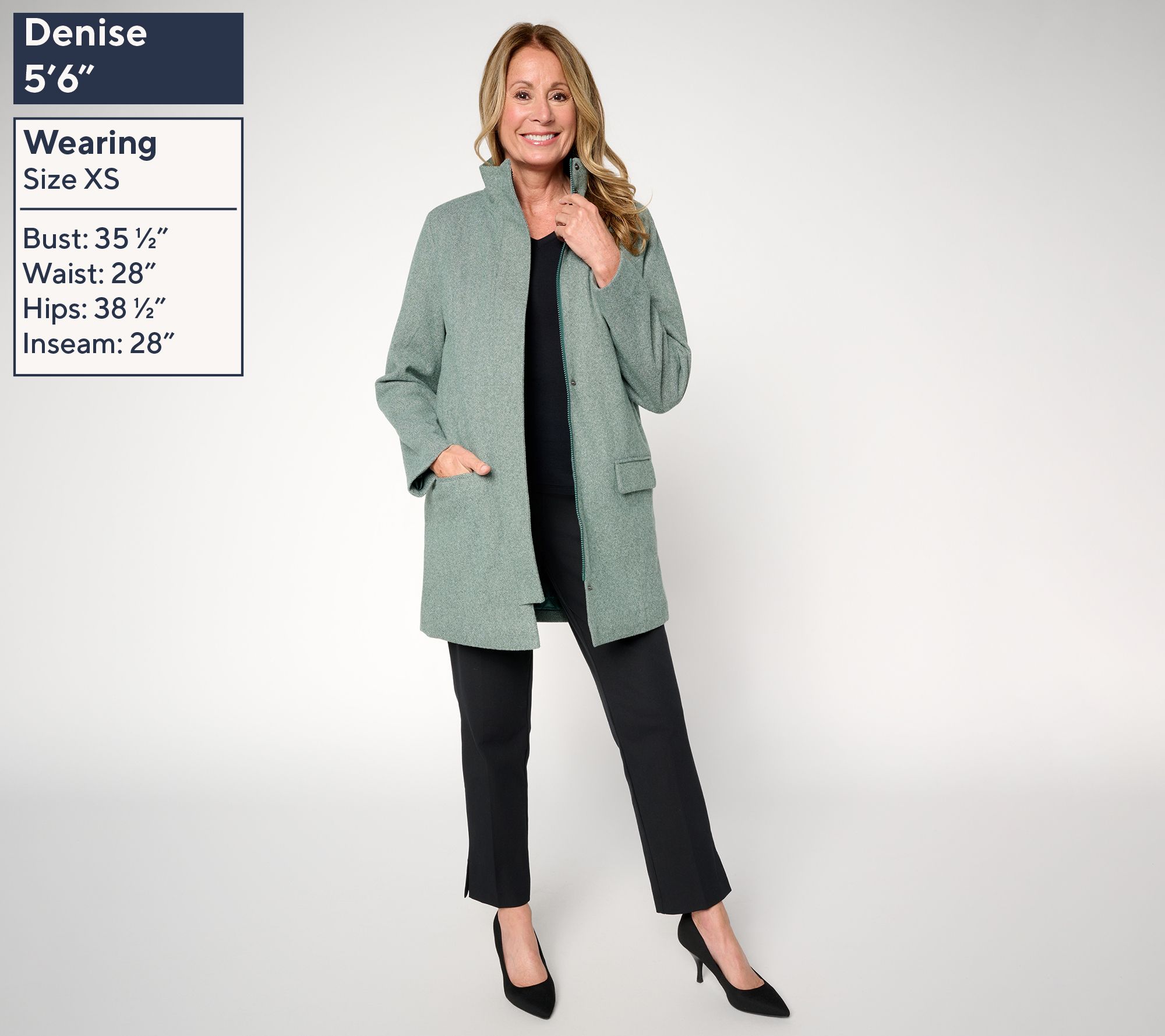• Length: missy length 32-1/2" to 34-5/8"; plus length 35" to 38-1/2"