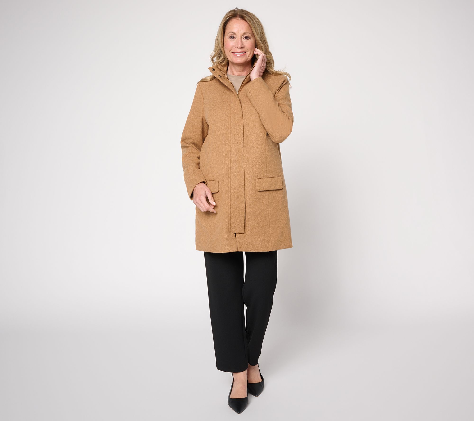 "As Is" Susan Graver Herringbone Duffle Coat w/ Quilted Lining