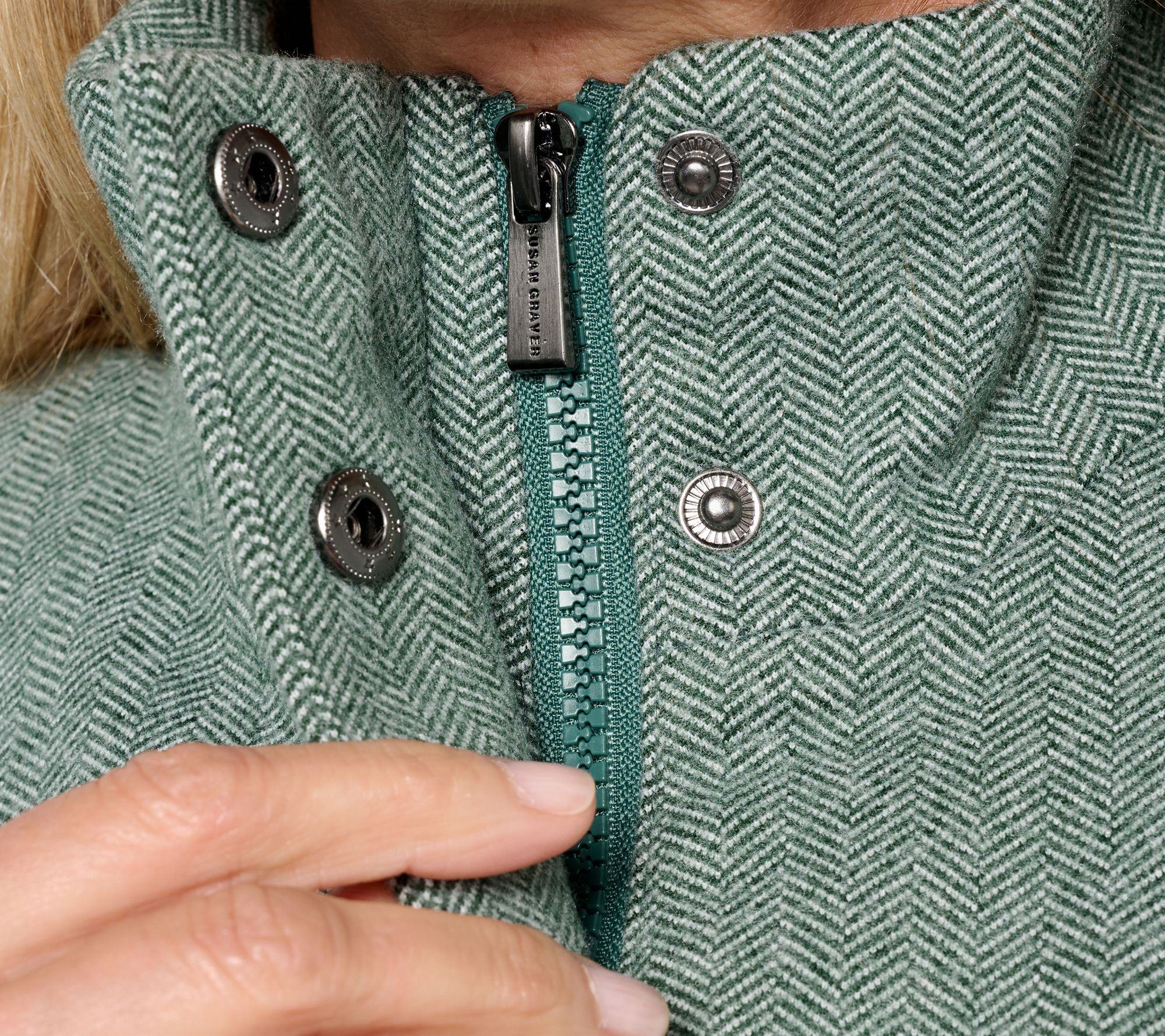 A timeless addition to chilly-weather wardrobes, this herringbone duffle coat, with a soft quilted lining, brings warmth and as well as sophistication to daily errands or weekend outings. Thoughtful details -- like a front storm flap, stand collar with snaps, and welt pockets -- make it easy to stay cozy and stylish through every brisk walk. From Susan Graver.