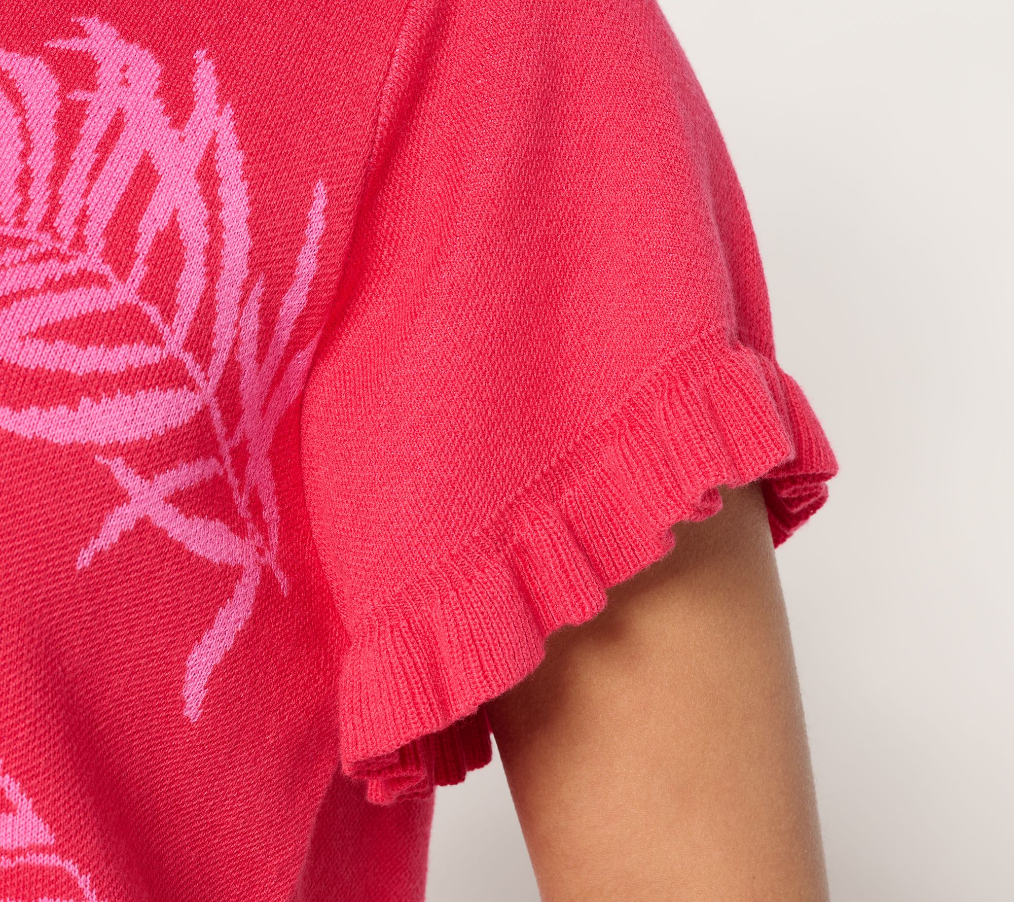 • Features: short flutter sleeves, jacquard, ribbing at neck and bottom hem