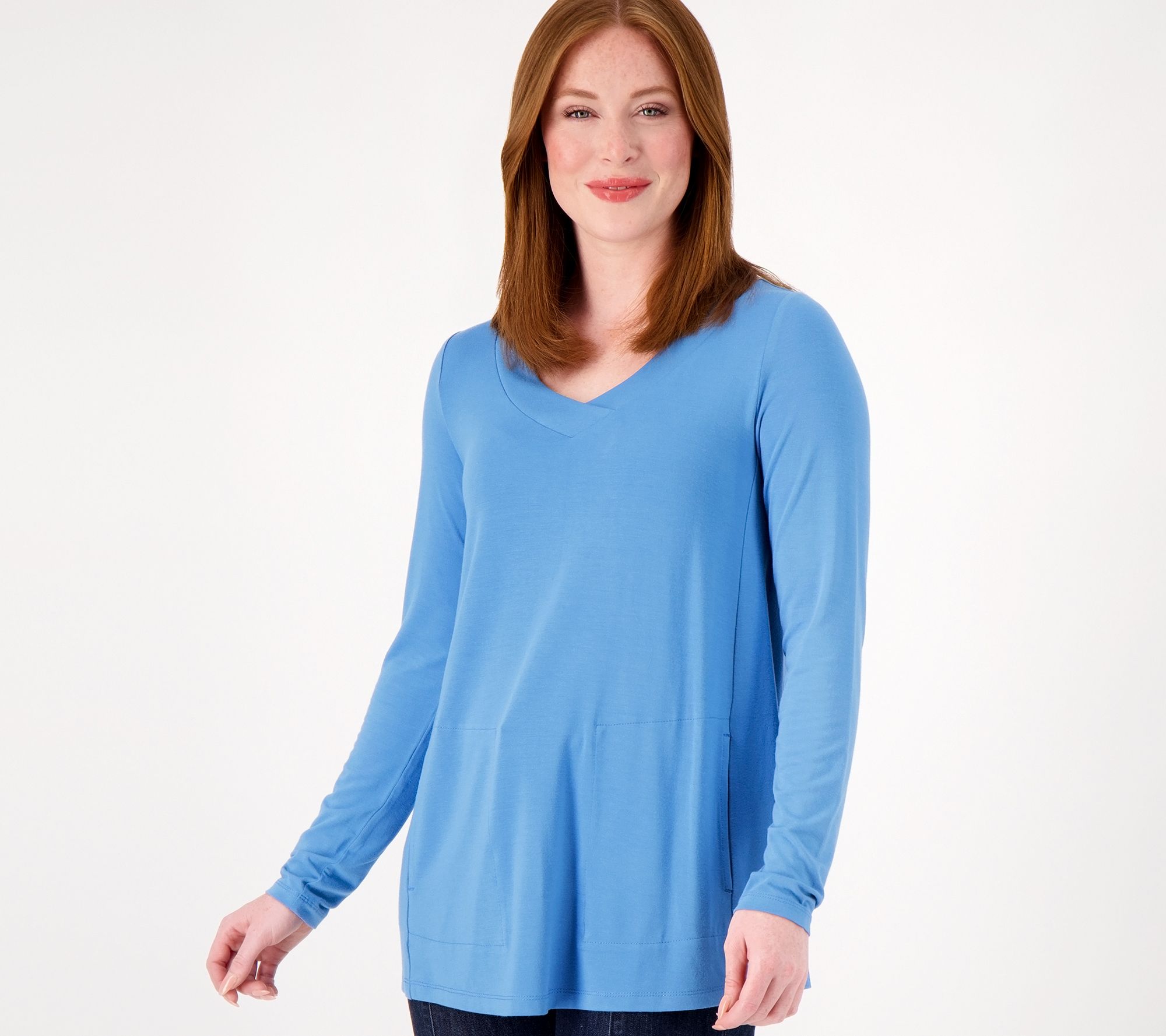 "As Is" Susan Graver Lifestyle Petite Spa Knit V-Neck Tunic