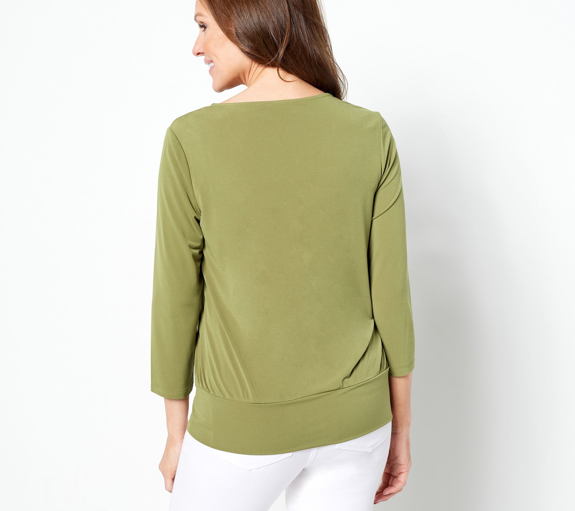 "As Is" Susan Graver Liquid Knit 3/4-Sleeve Top with Banded Bottom