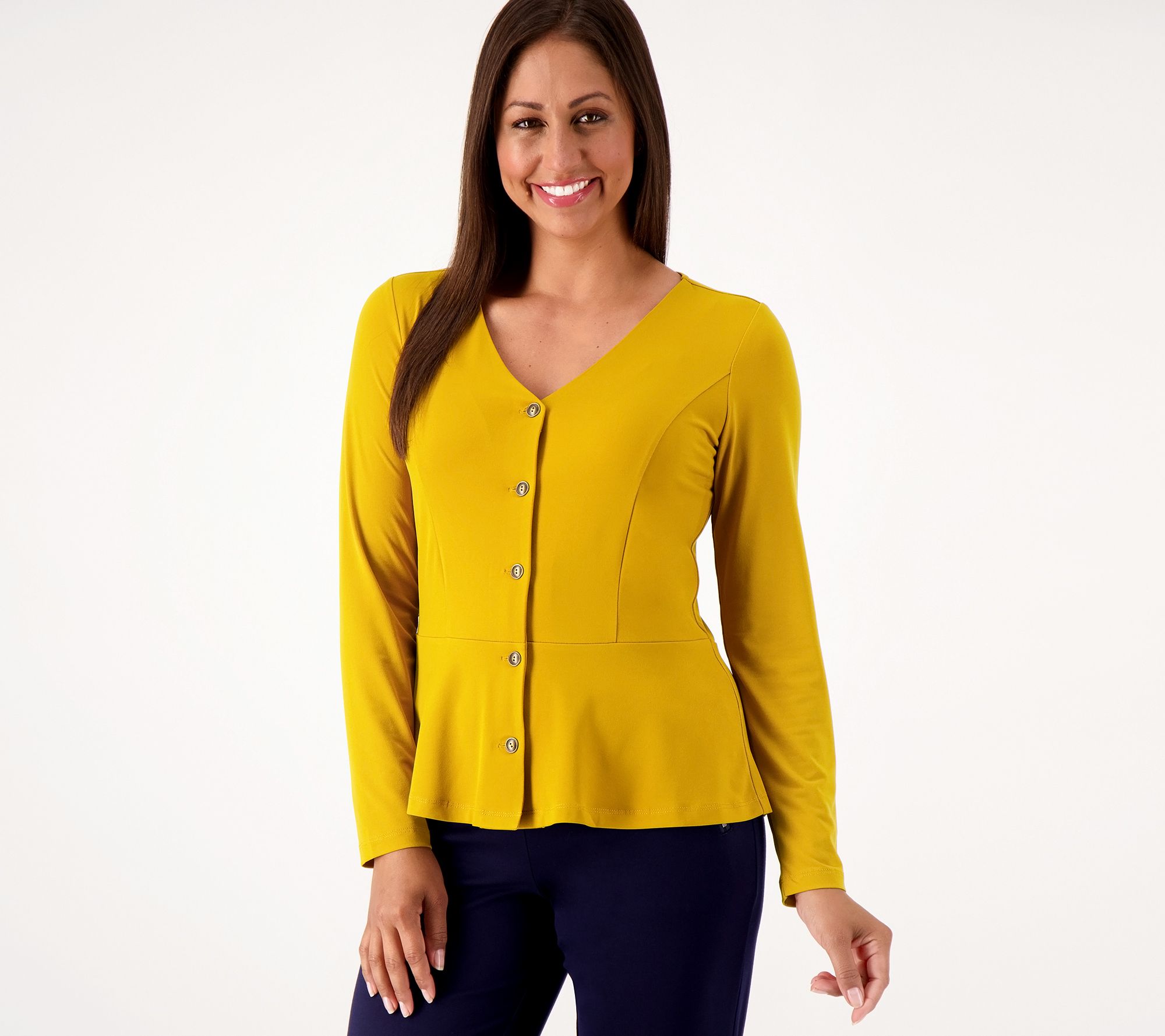 "As Is" Susan Graver Liquid Knit Button Front Peplum Top