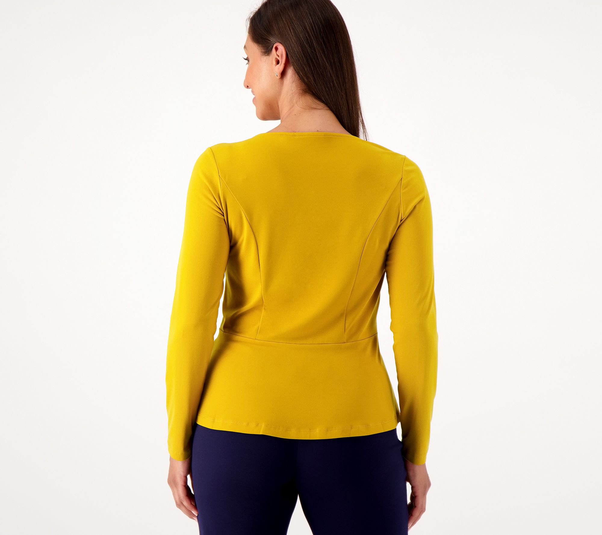 We love our lounge sweats, but we're ready to work in a few more polished, pro-level pieces. Who's with us?! This Liquid Knit® top does just that, with a waist-defining peplum and pretty princess seaming that says I'm here to TCB. And, thinking beyond business, we'll also be tapping it for gatherings and chic photo ops with denim and leggings (fall pumpkin-picking, anyone?). From Susan Graver.