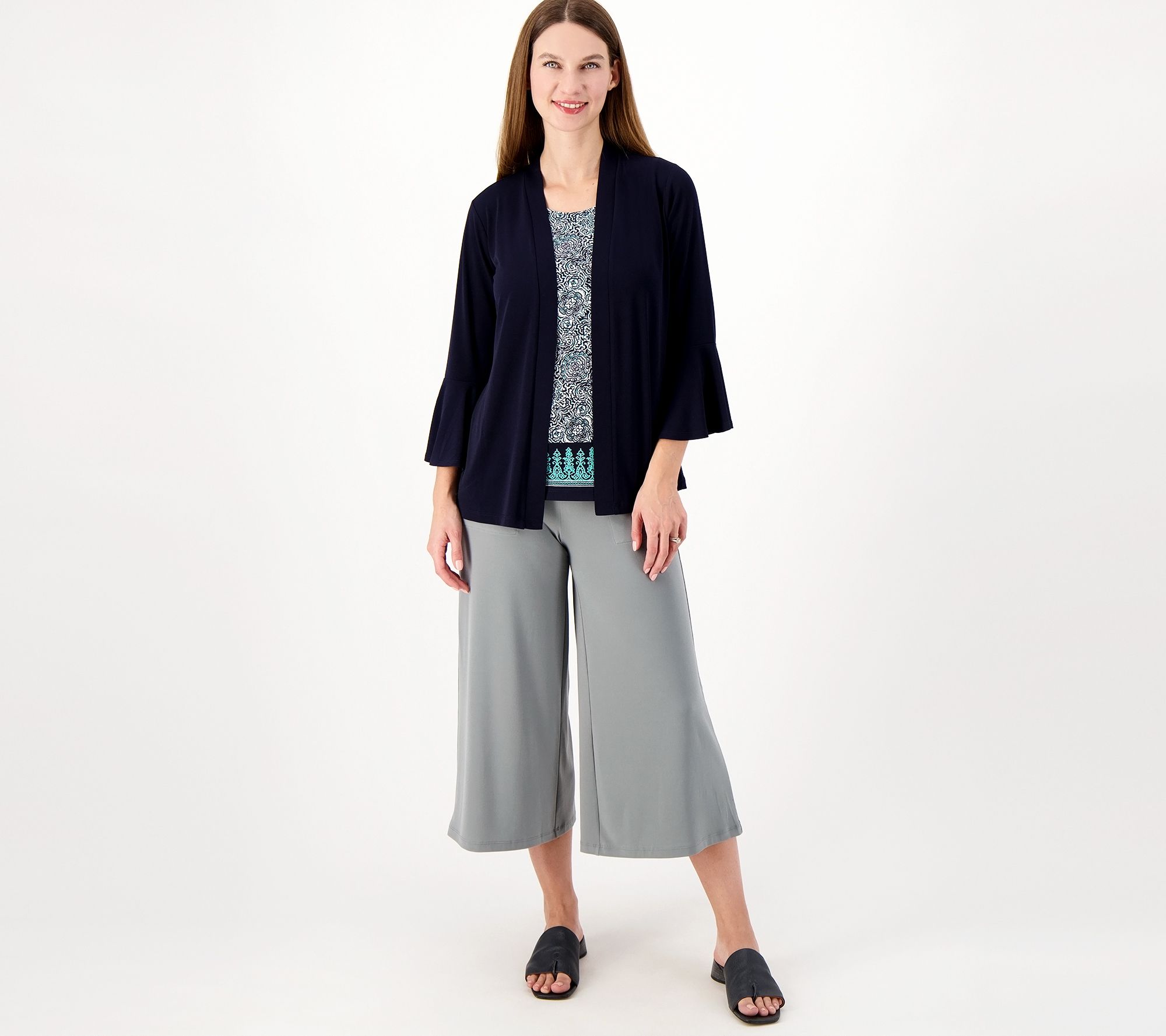 "As Is" Susan Graver Liquid Knit Cardigan & Printed Liquid Knit Tank Set