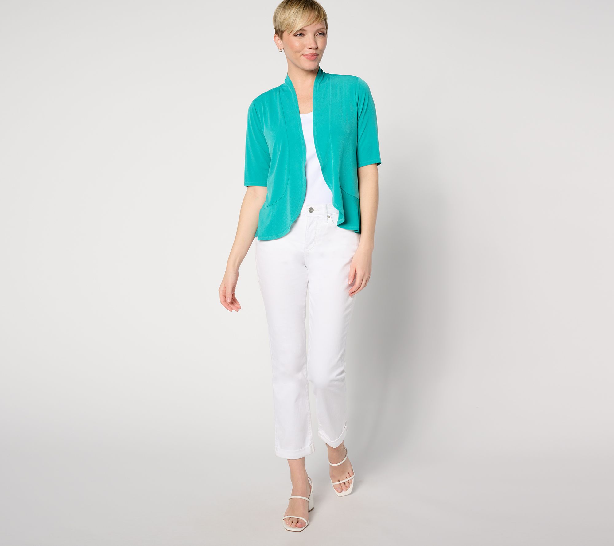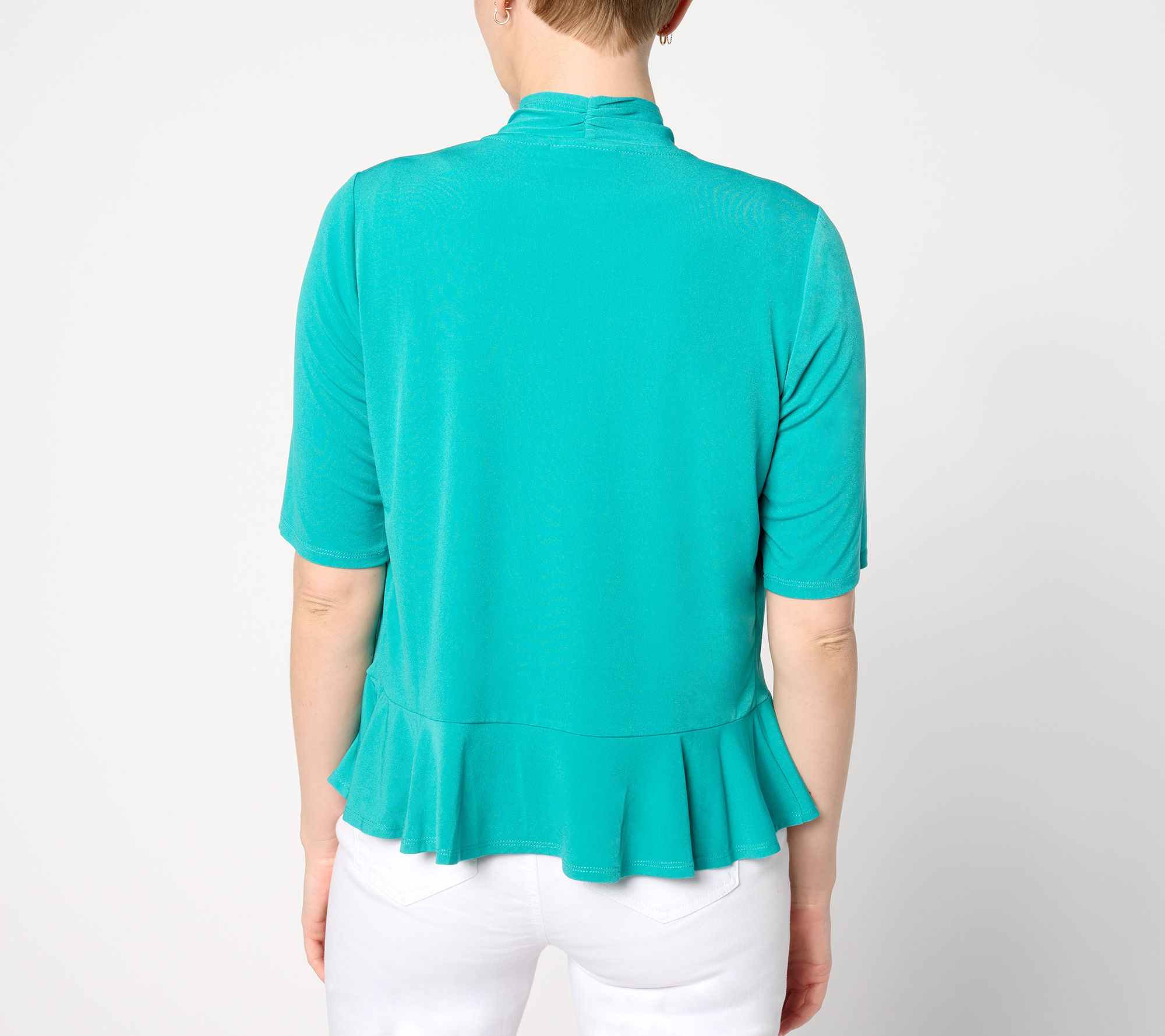 Complete your outfit with this stylish shrug. With an open-front design and pretty peplum hem, this lovely Liquid Knit topper drapes beautifully over the body for a luxe layered look. From Susan Graver.