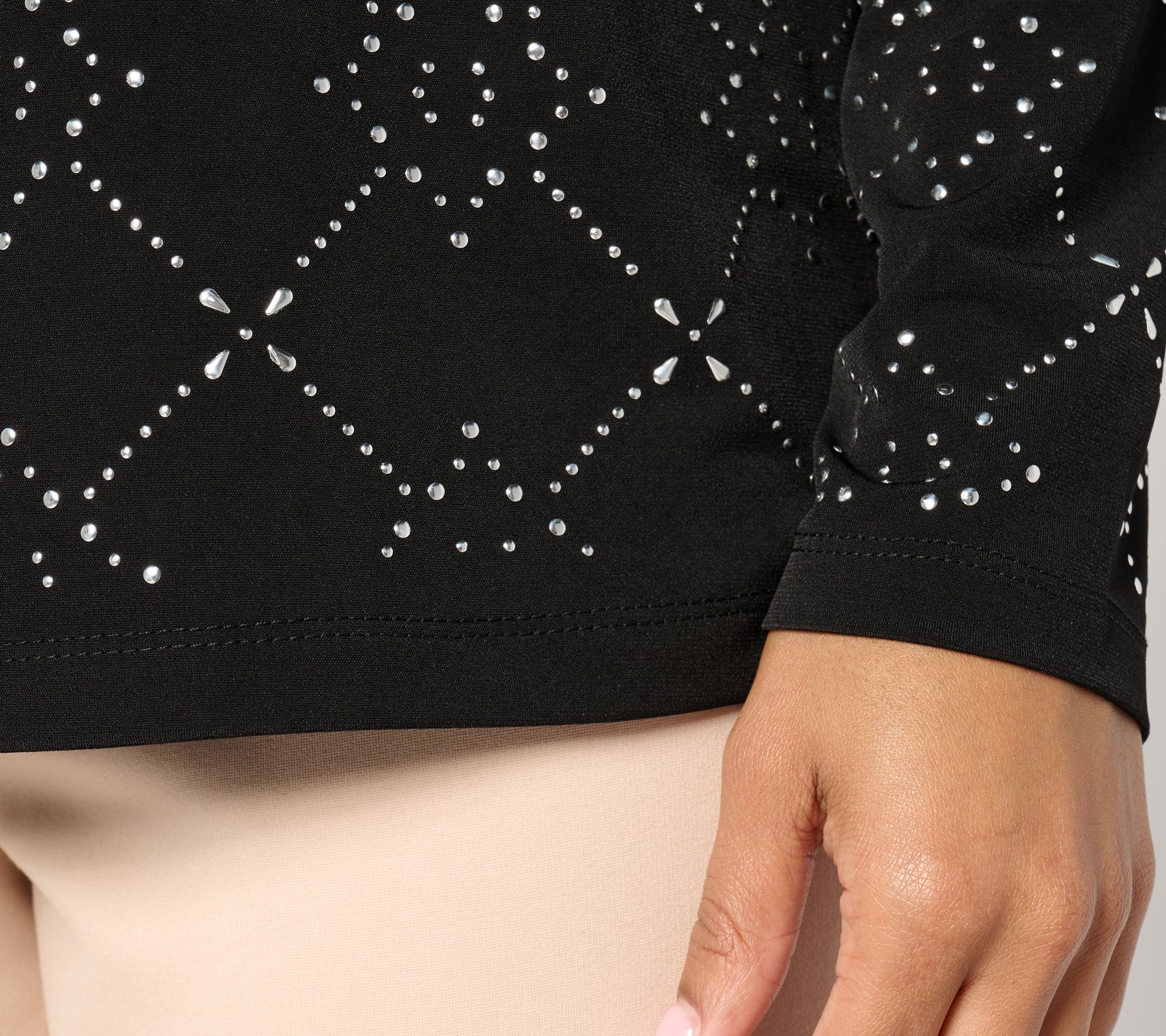 "As Is" Susan Graver Liquid Knit Embellish Long Sleeve Top