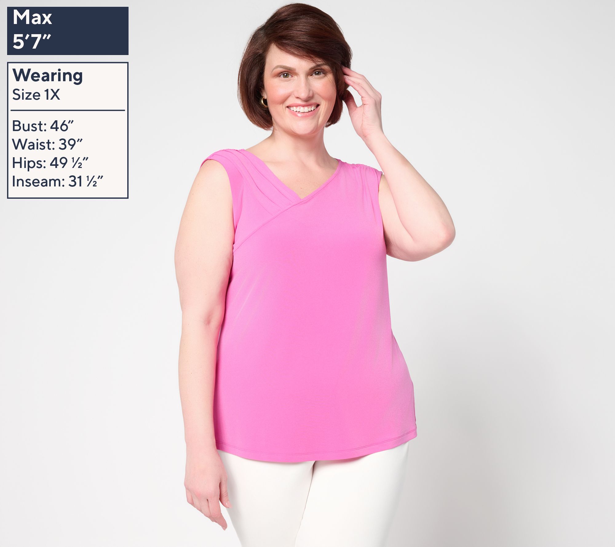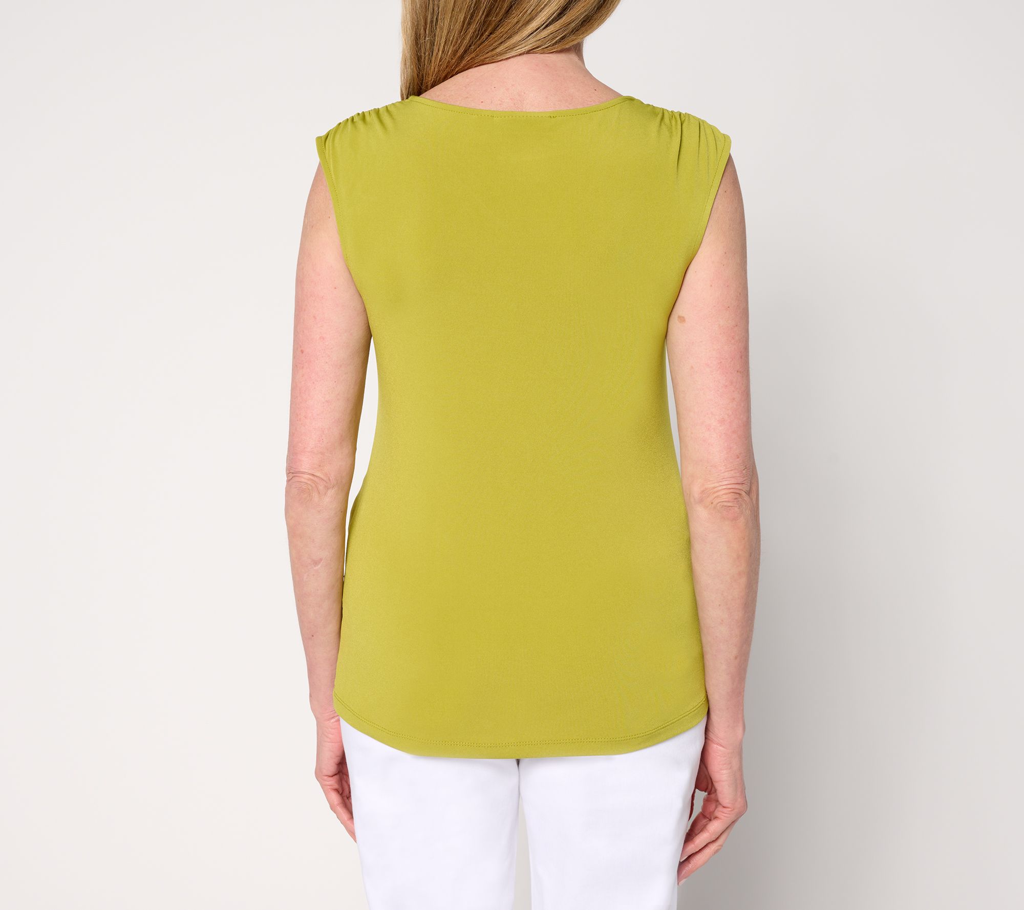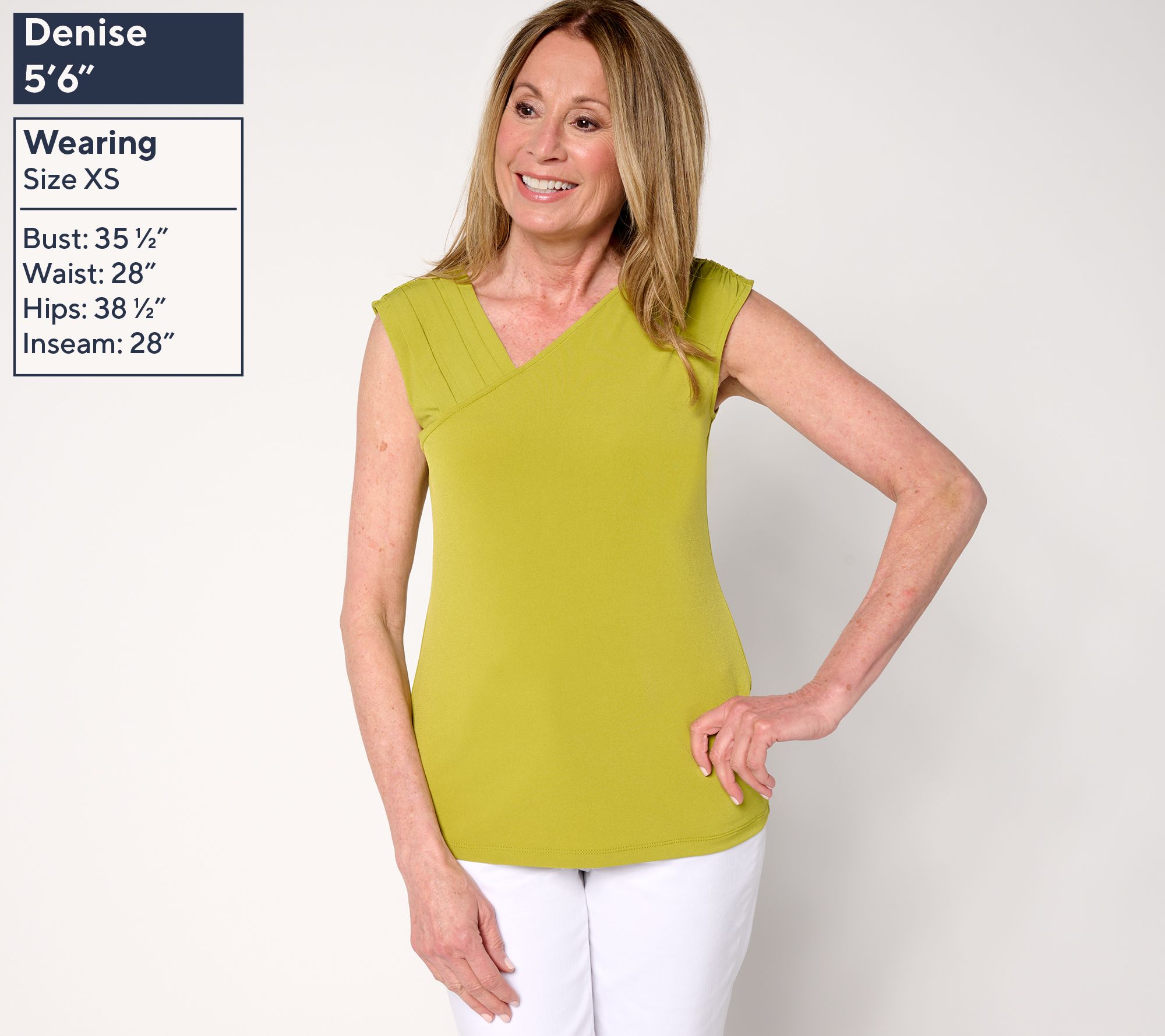 Polish up your wardrobe with this super versatile top that provides a leading lady look for any occasion. Crafted in a favorite fabrication, Liquid Knit®, its asymmetrical design with pleated detailing on one shoulder makes it a standout from other summery styles. From Susan Graver.