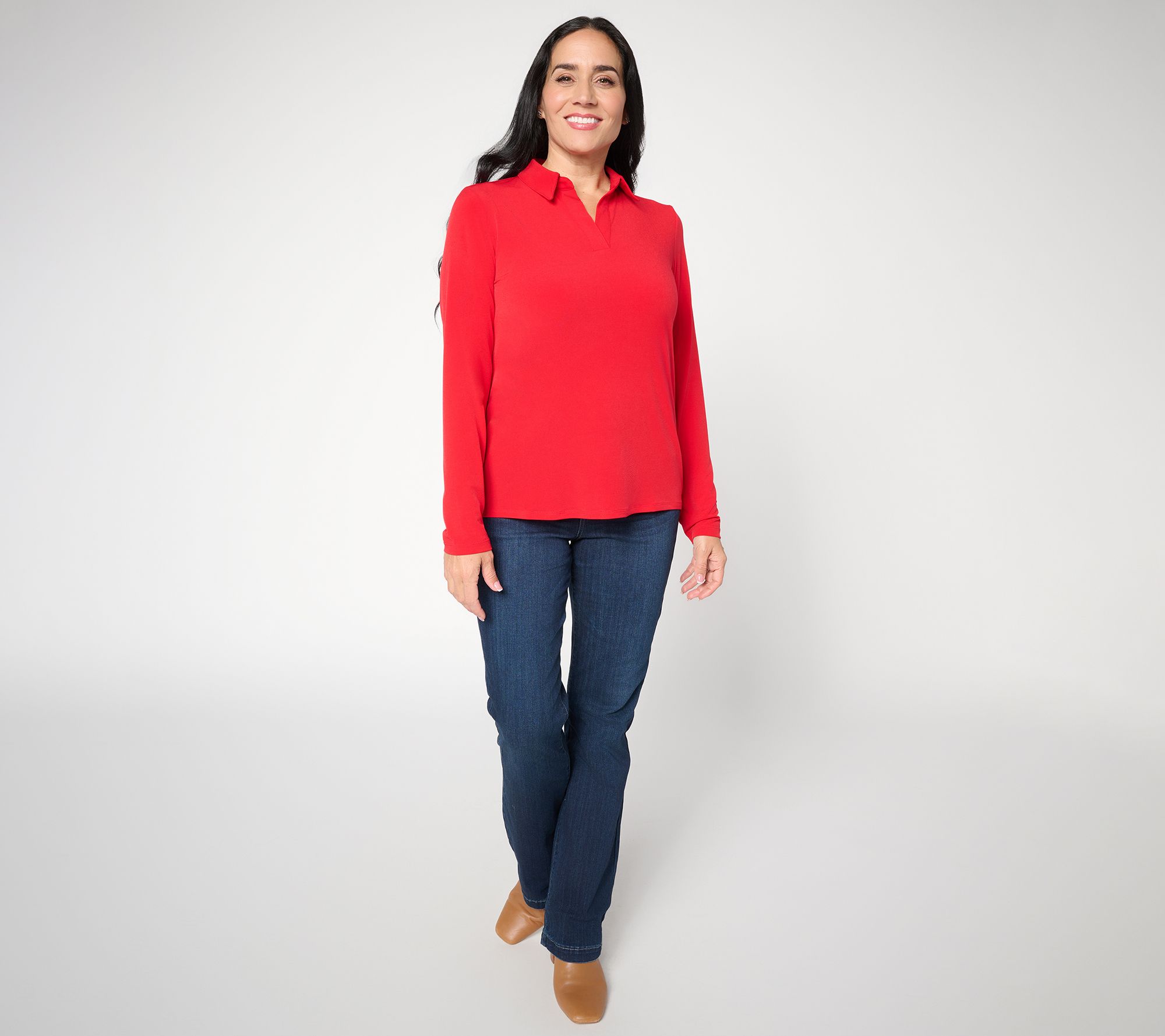 Designed for weekend wanderings and casual gatherings, this knit henley top combines everyday ease with a polished touch. A flattering V-neckline, collar, and shapely shirttail hem work together to elevate your wardrobe, making it a versatile go-to for all your plans. From Susan Graver.