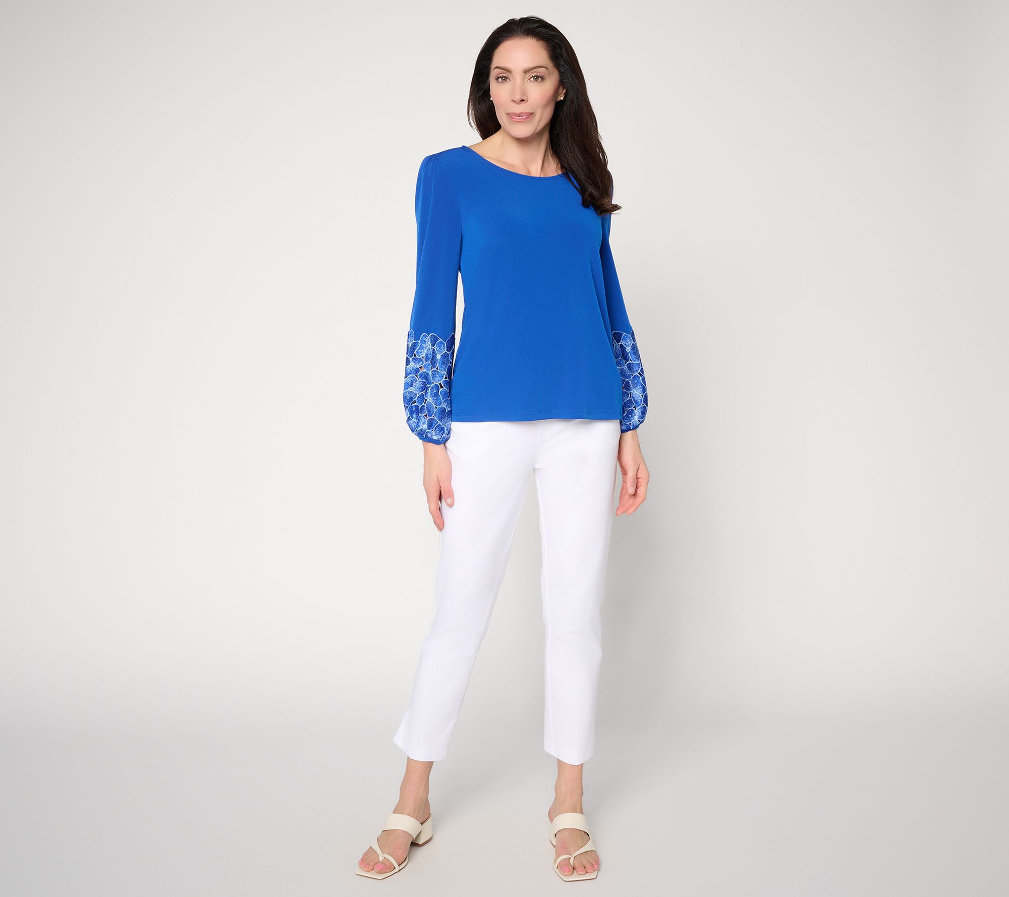 "As Is" Susan Graver Liquid Knit Scoop-Neck Lace Sleeve Top