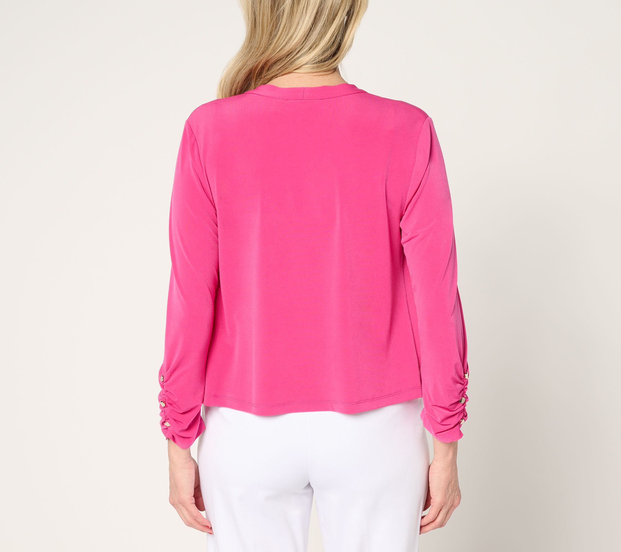 "As Is" Susan Graver Liquid Knit Shrug with Shirring & Button Detail