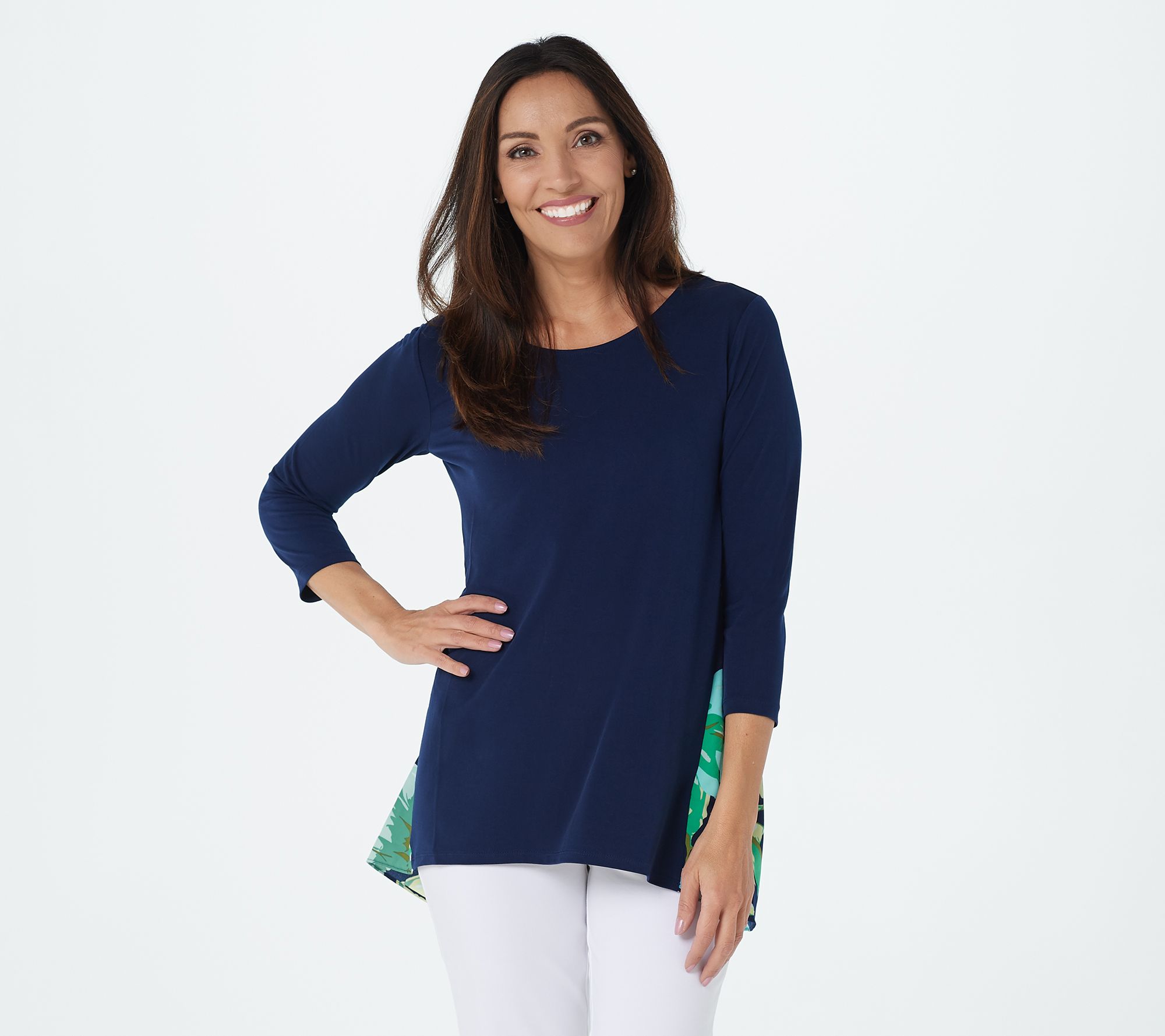 "As Is" Susan Graver Liquid Knit Tunic with Printed Woven Back
