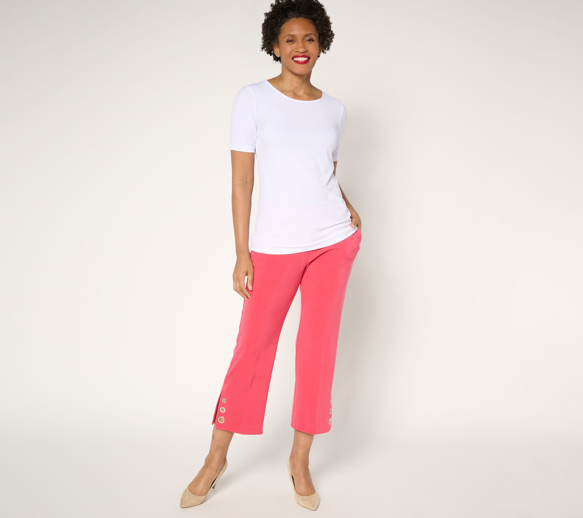 Step up your style this season with these petite mini boot-cut crop pants. These cropped beauties feature a comfortable knit fabric and an on-trend bootcut leg, making them perfect for any casual outing. The on-seam pockets and stylish grommets add functional flair to your ensemble, ensuring you stay chic and practical all day long. From Susan Graver.