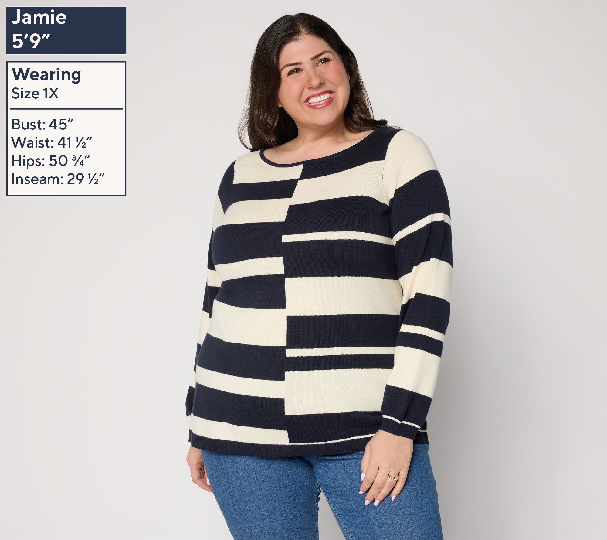 "As Is" Susan Graver Mixed Stripe Intarsia Sweater