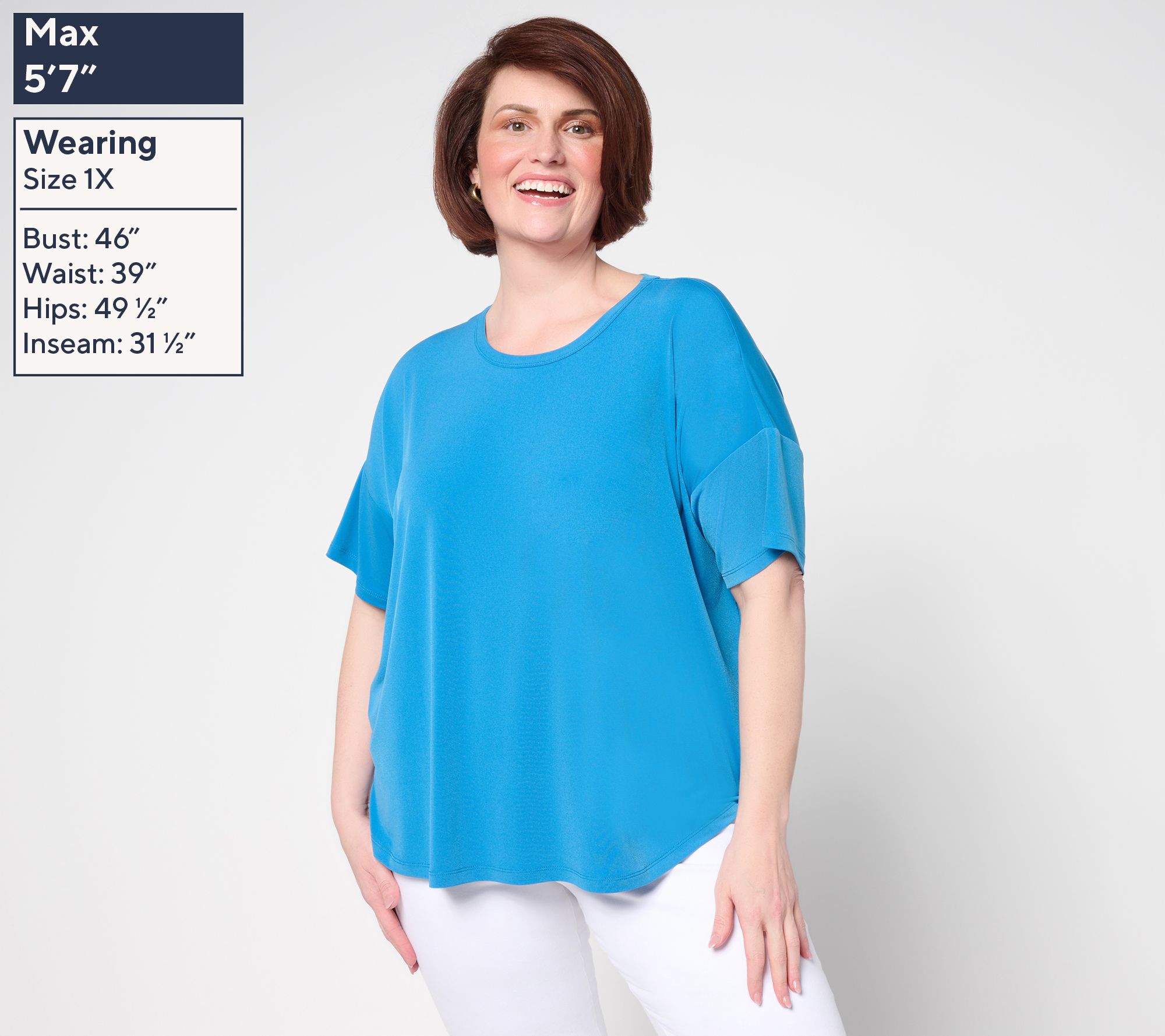 • Fabrication: Liquid Knit® soft, flattering knit with a smooth feel and fluid drape