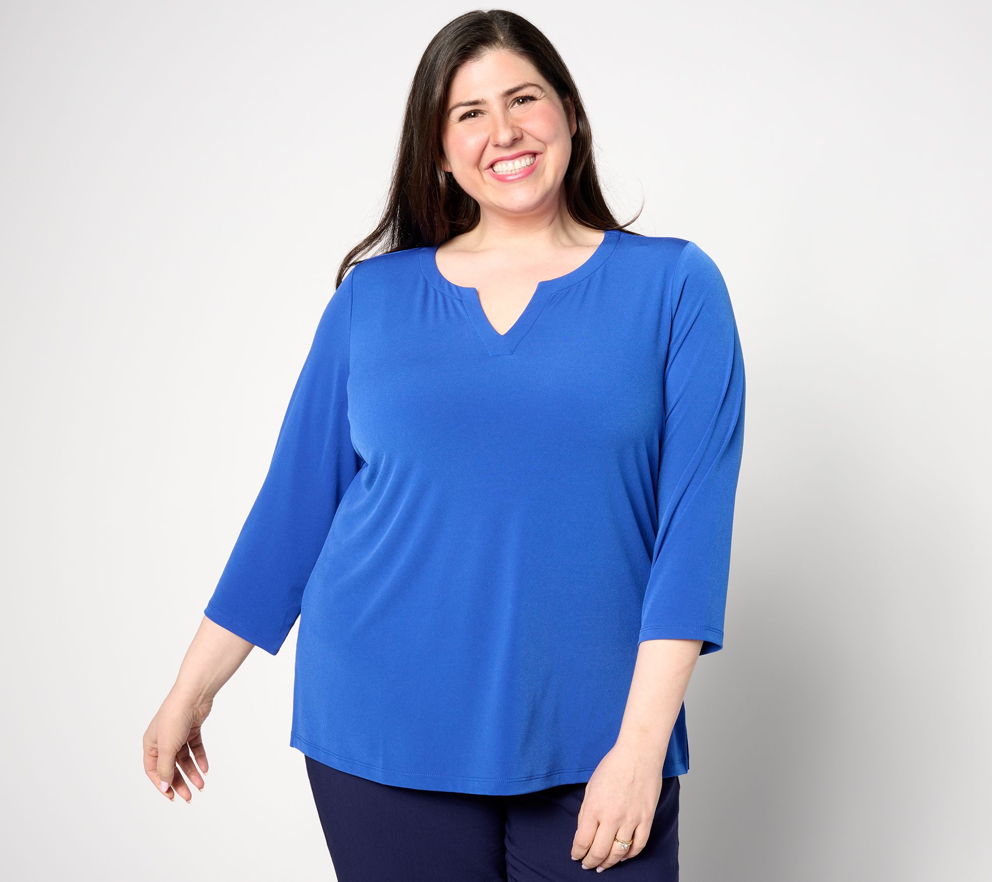 Simply sophisticated, this split-neck top leaves a little room for that statement necklace you've been wanting to wear. Thanks to its solid, Liquid Knit® design, the effortless style easily pairs with a bevvy of bottoms so you can wear the feel-good fabric on repeat. From Susan Graver.