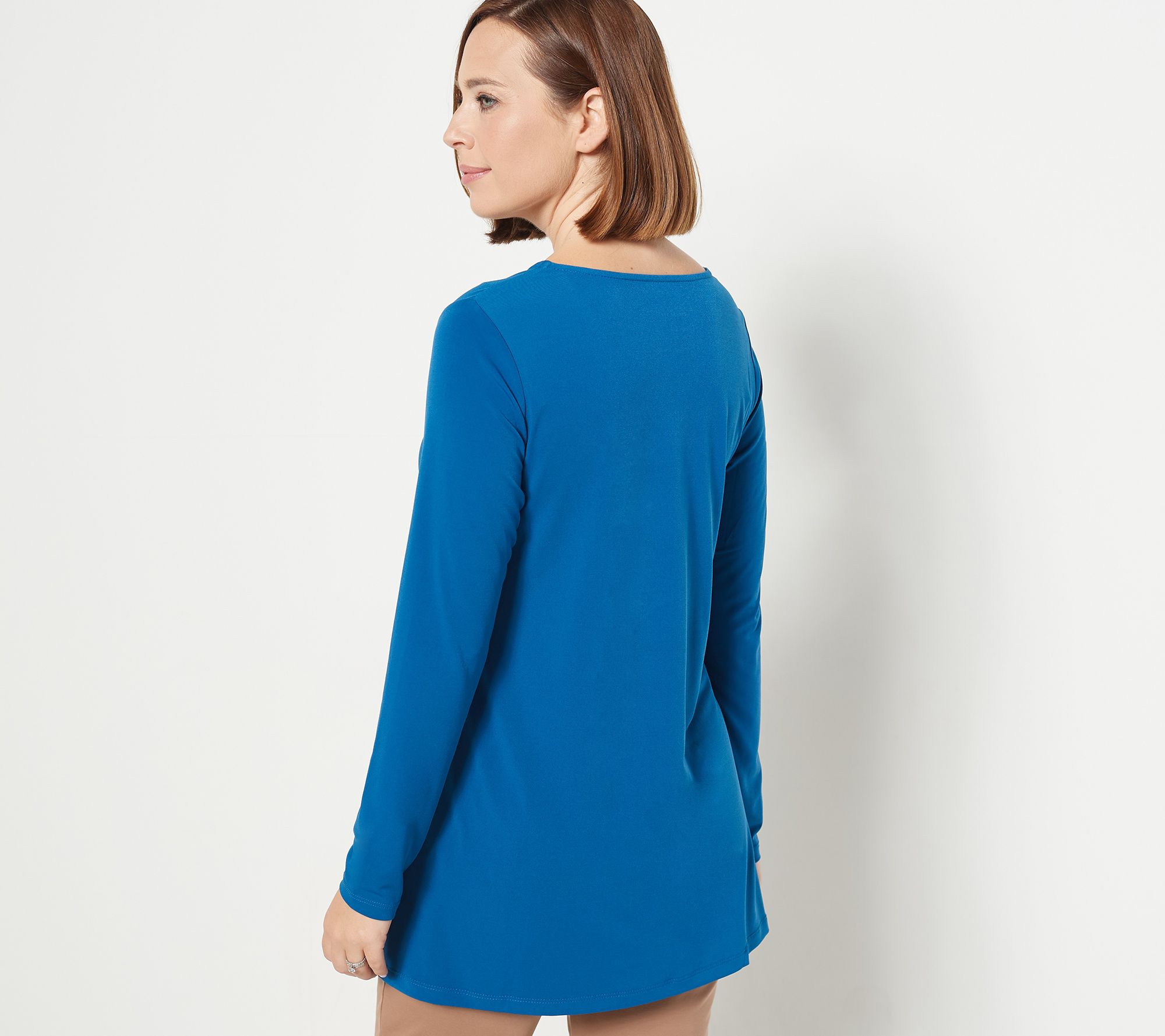 Crafted with smooth-as-butter Liquid Knit®, this tunic top flares to an A-line bottom opening, giving you plenty of movement and swing with every step. Pair it with jeans or leggings, for a daily-wear vibe. From Susan Graver.