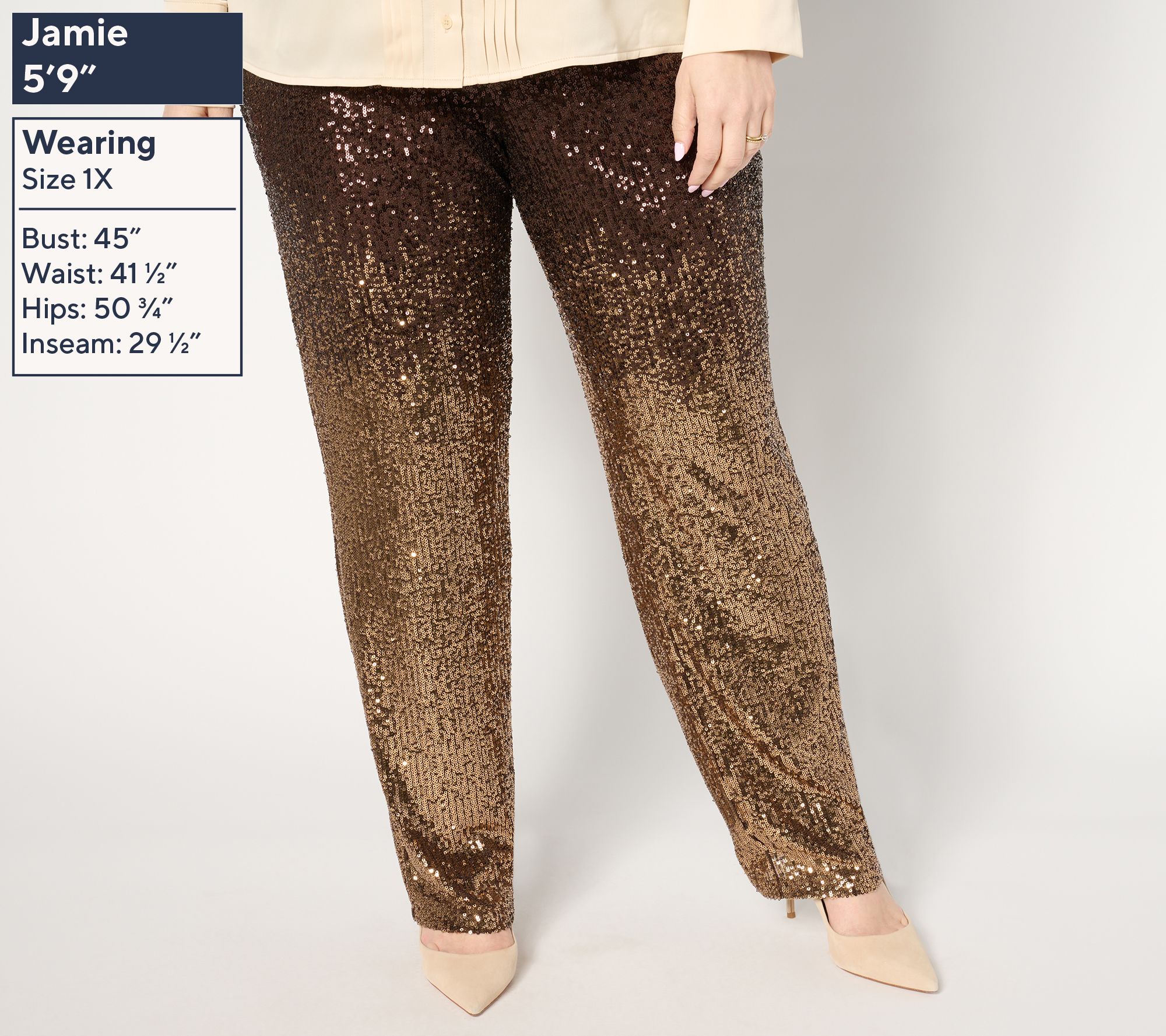 "As Is" Susan Graver Occasion Petite Ombre Sequin Pull On Pants