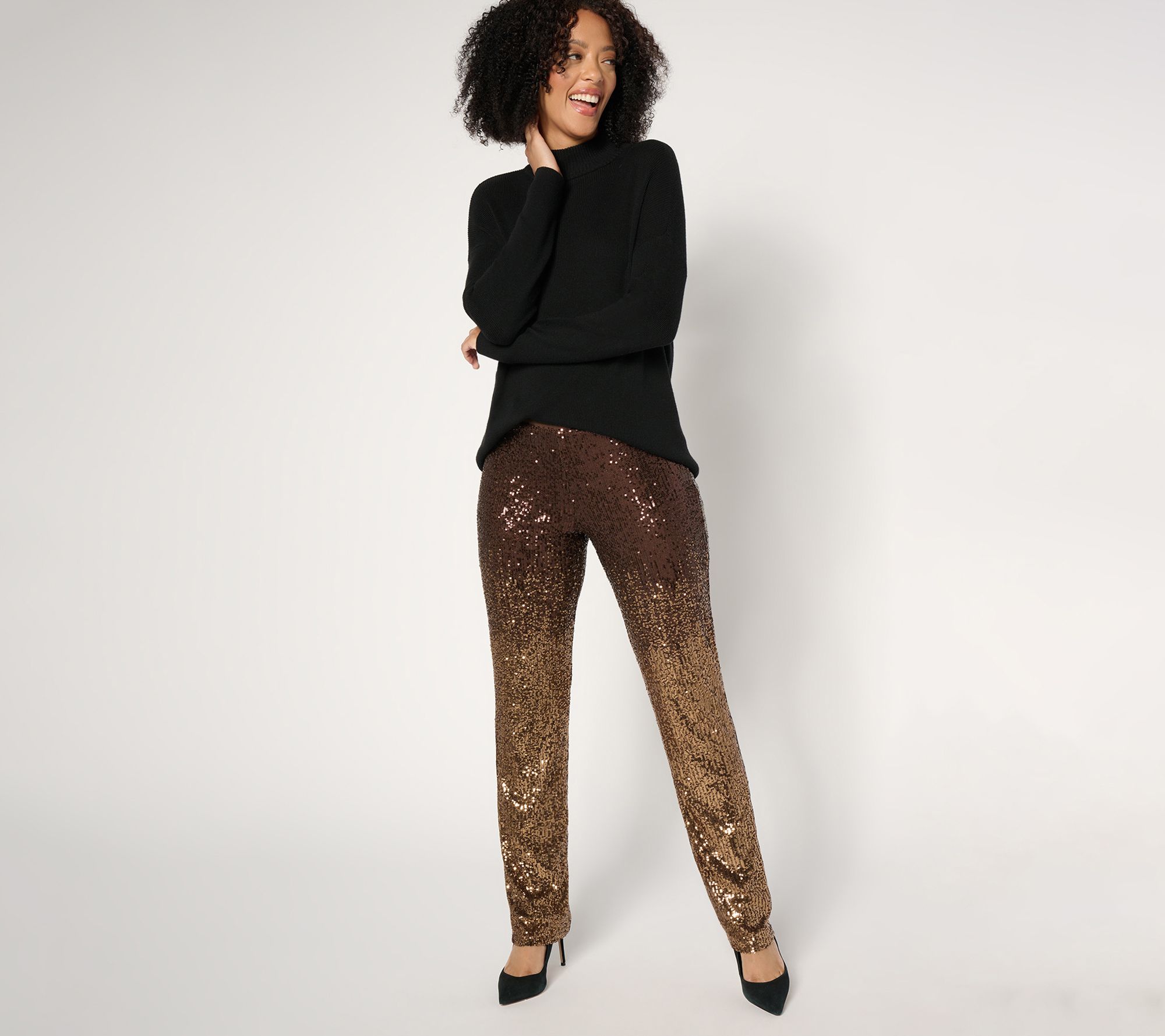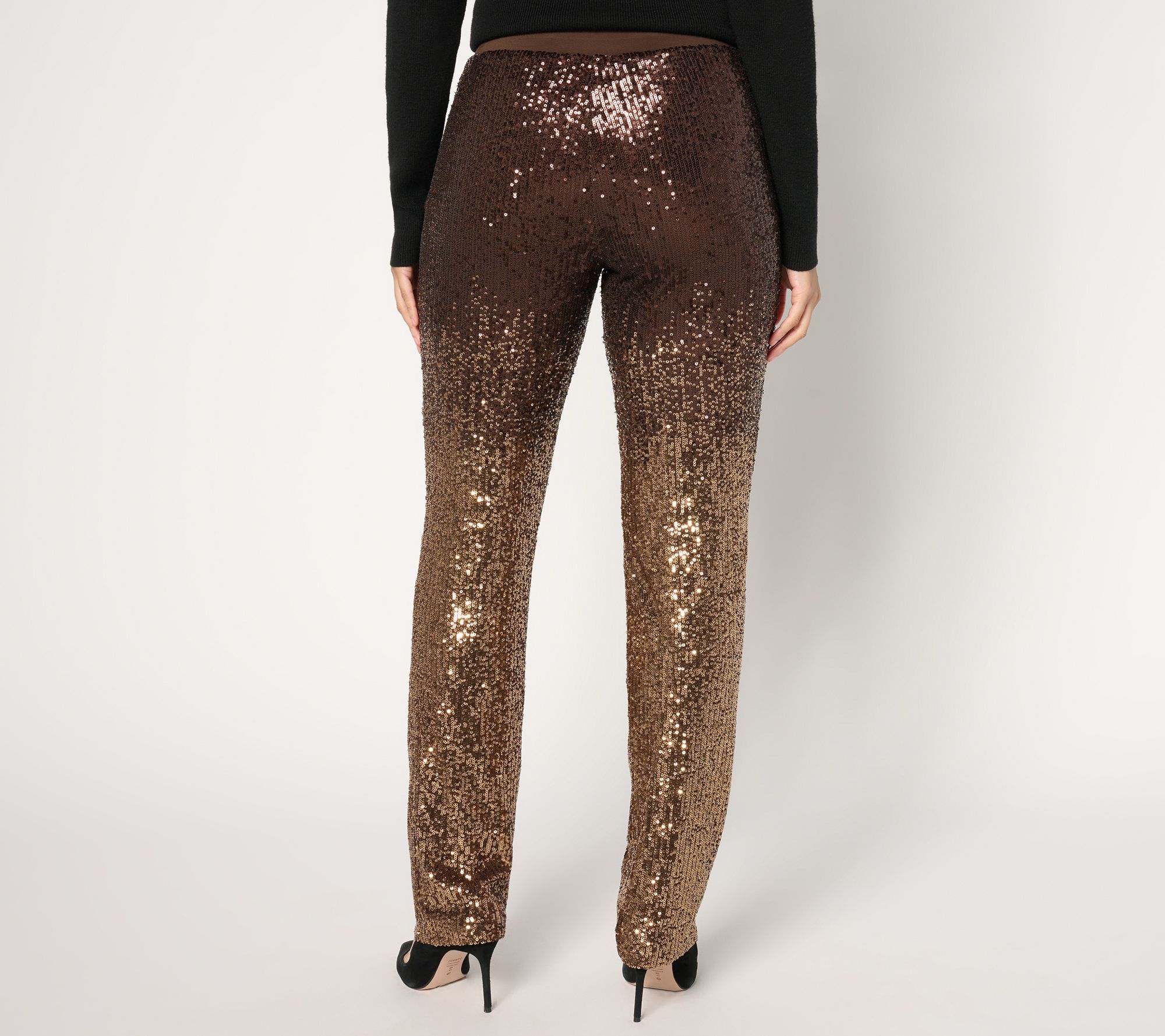 Let's celebrate! Susan Graver wants you to take center stage in these sparkle-and-shine ombre sequin pants. Whether you're dancing the night away or making a stylish entrance at your next event, these shimmering picks are designed for those who love a little glam (okay, a lotta glam) in their life. The pull-on style offers comfort without compromising on elegance. From Susan Graver.