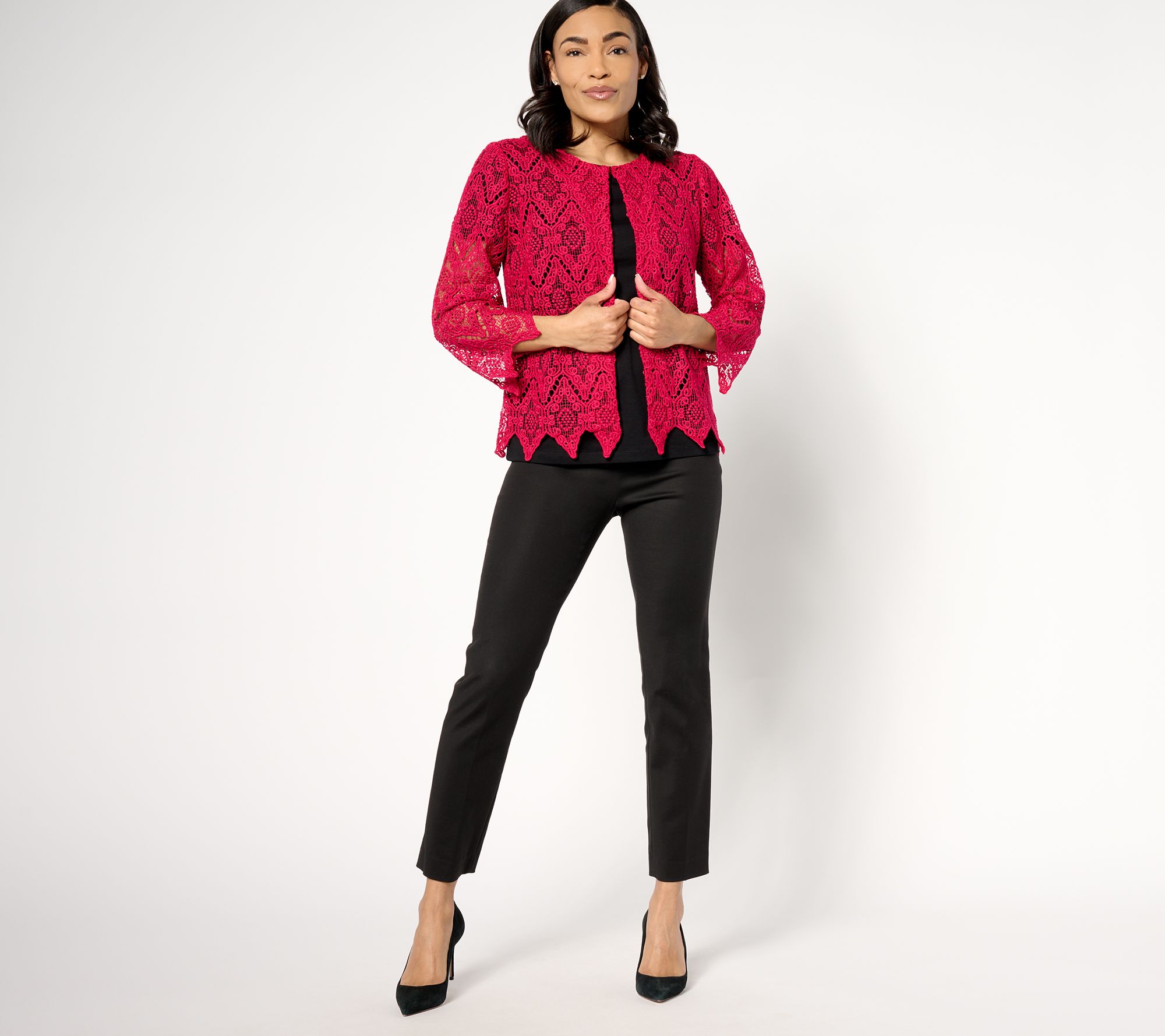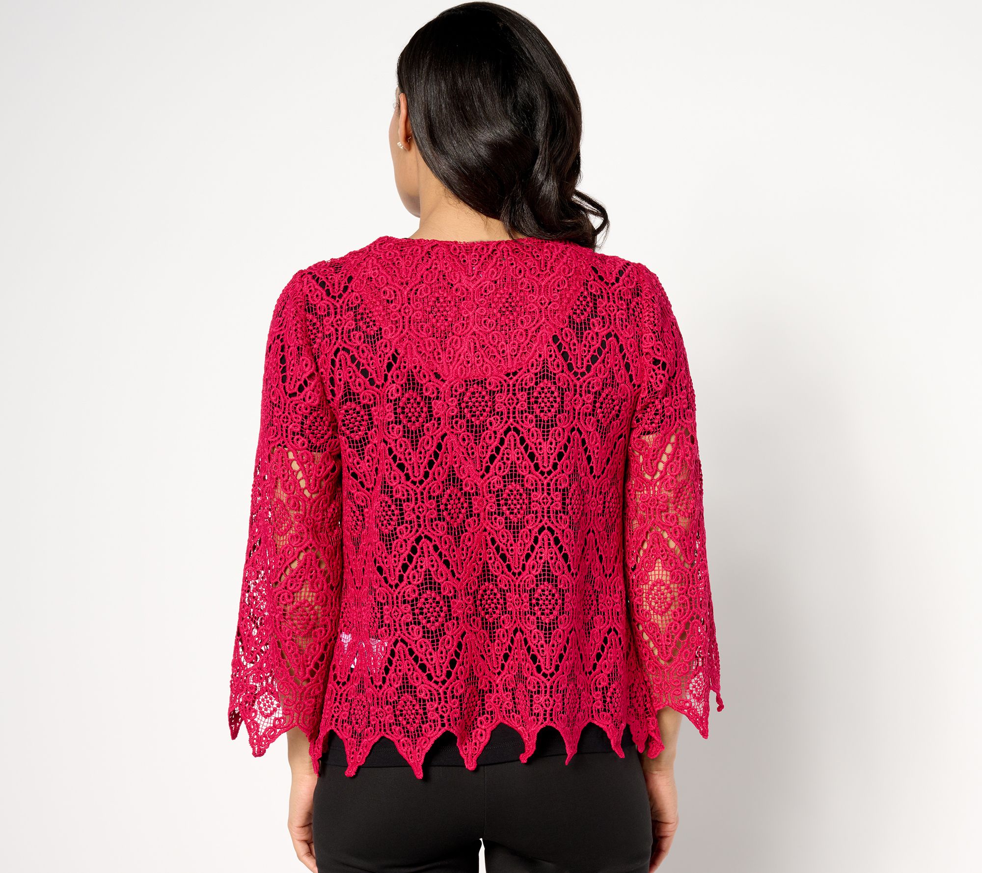 "As Is" Susan Graver Occasion Scalloped Edge Lace 3/4 Sleeve Shrug