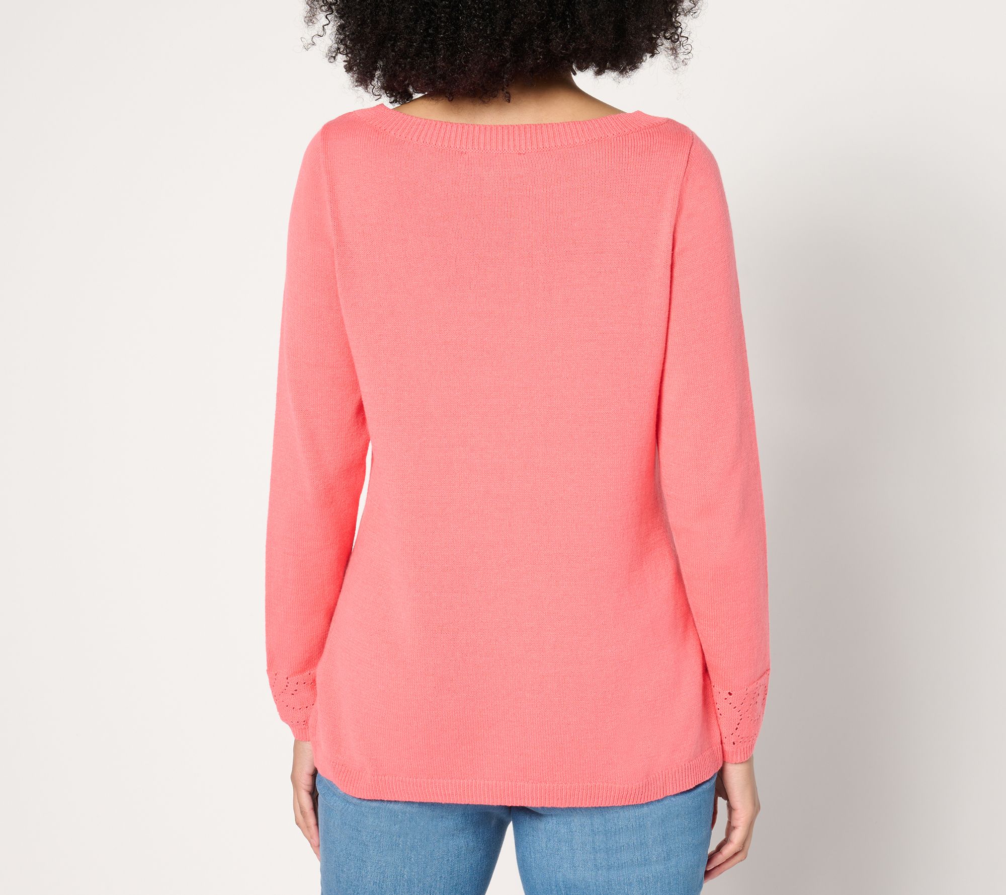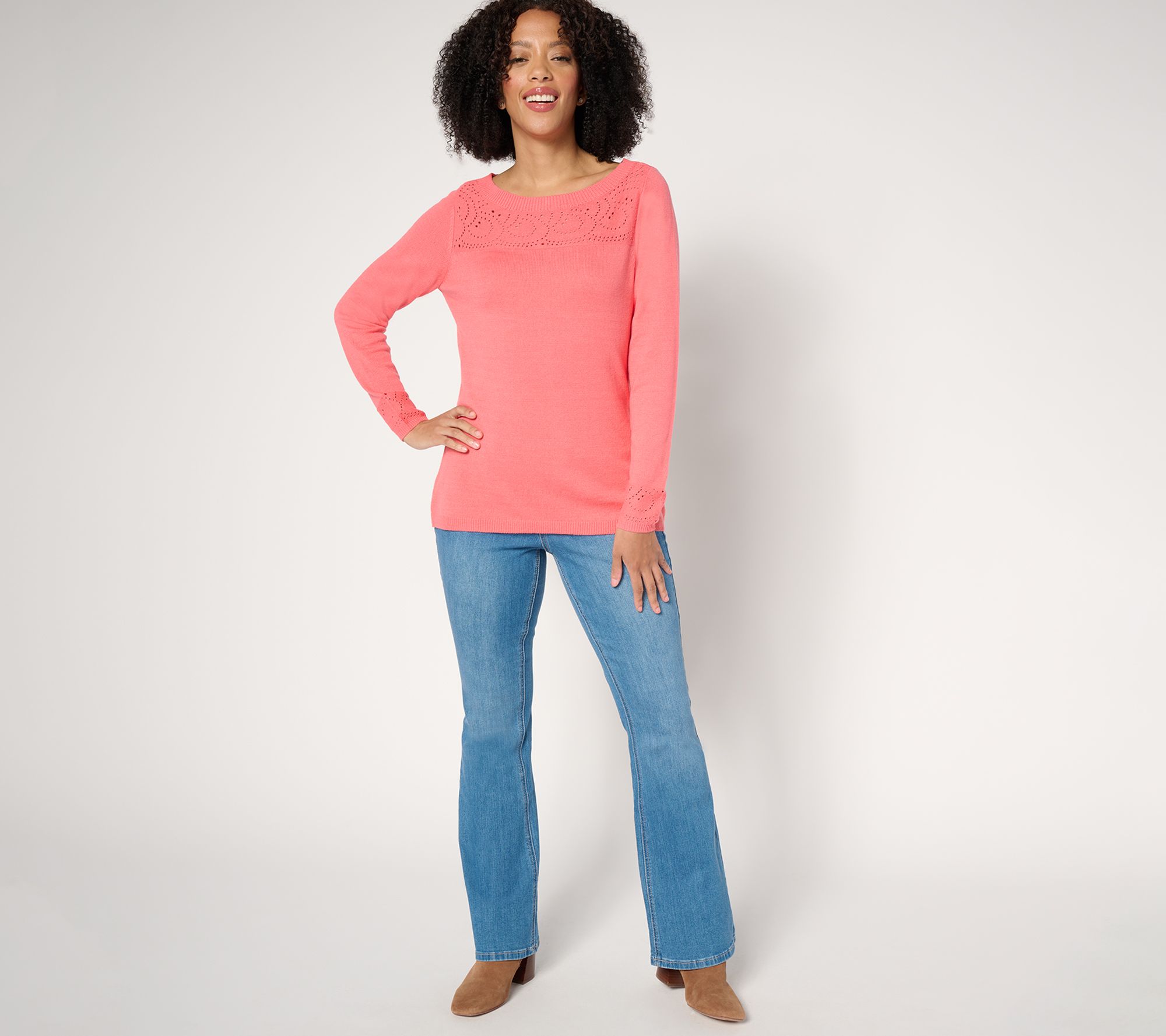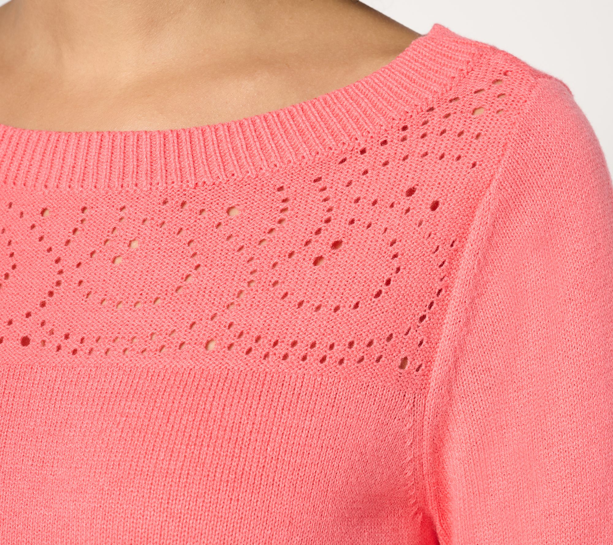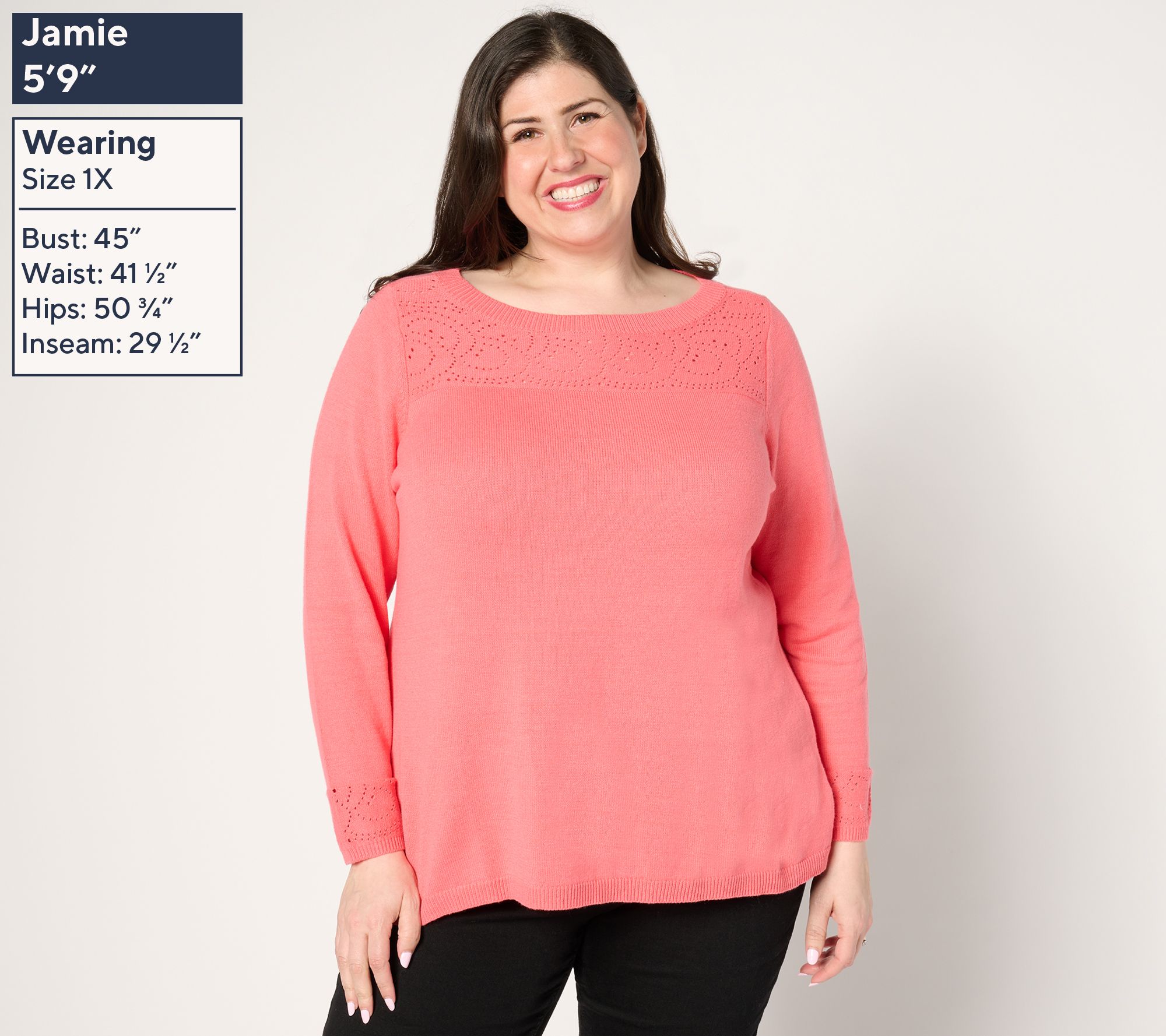 Sweater weather? Yes, please! Embrace the cooler temps with open arms and this open stitch sweater. Complete with ribbed details at the neck, cuffs, and hemline for a more polished finish, dress it up with tailored trousers or keep it casual with your favorite jeans. From Susan Graver.