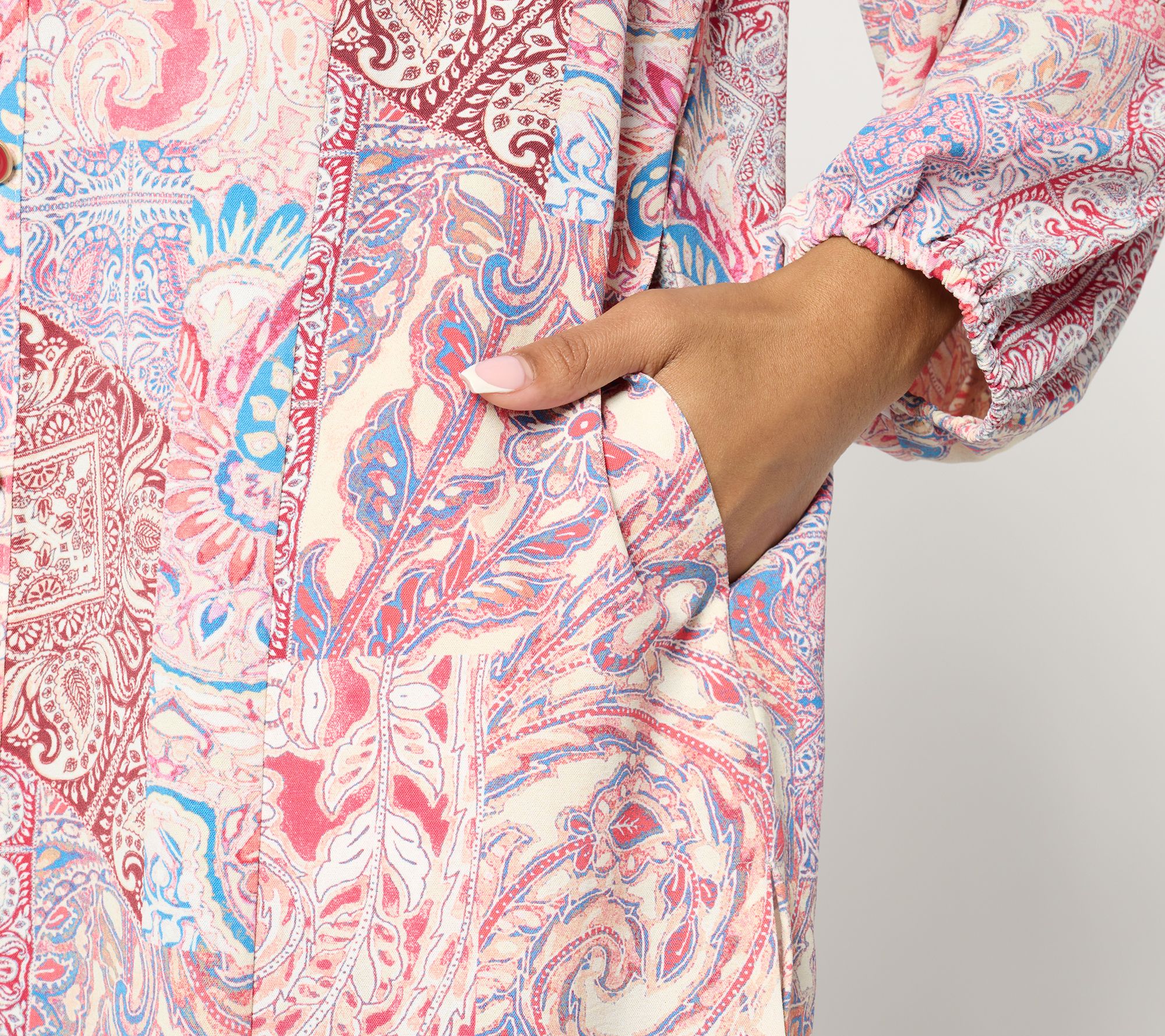 "As Is" Susan Graver Passport Petite Printed St Tropez Woven Duster
