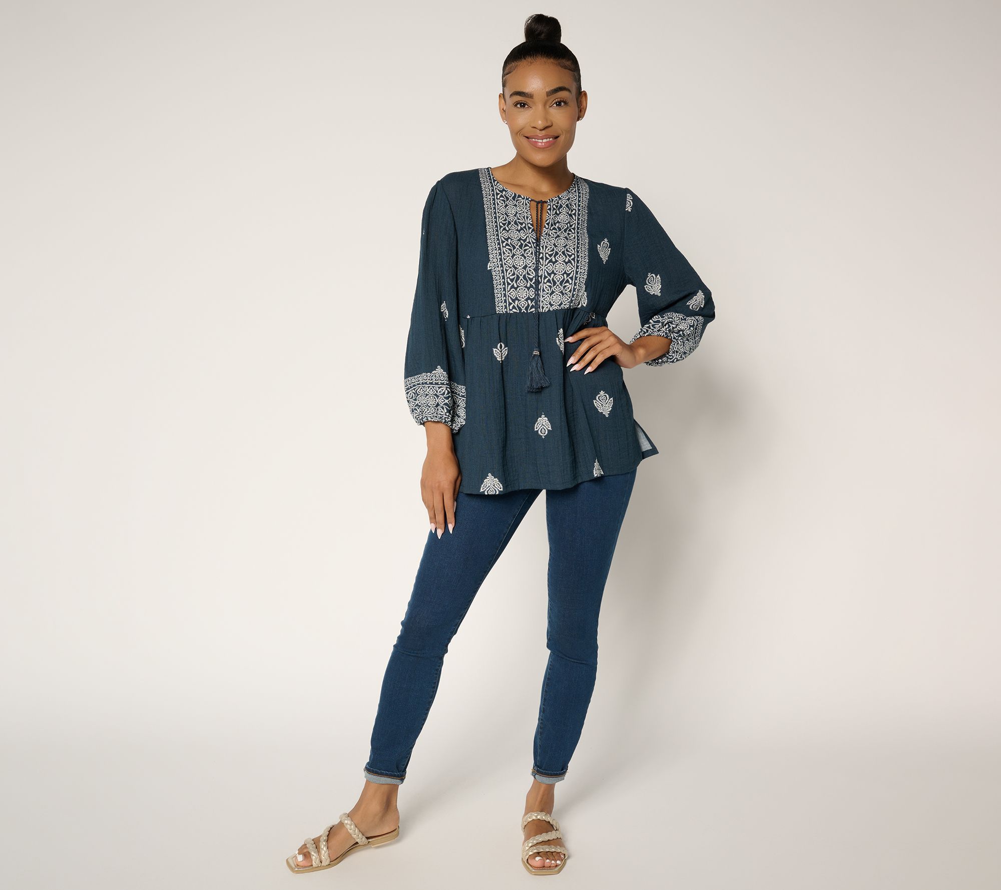 "As Is" Susan Graver Passport Petite Printed Textured Woven Tunic