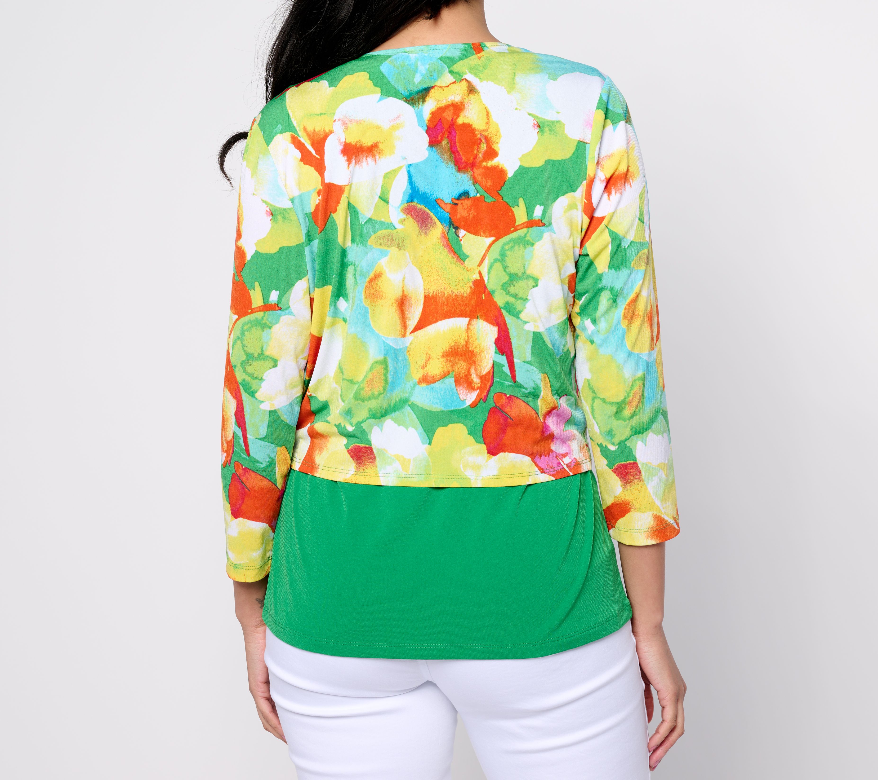 "As Is" Susan Graver Passport Printed Liquid Knit Tie-Front Shrug Tank Set