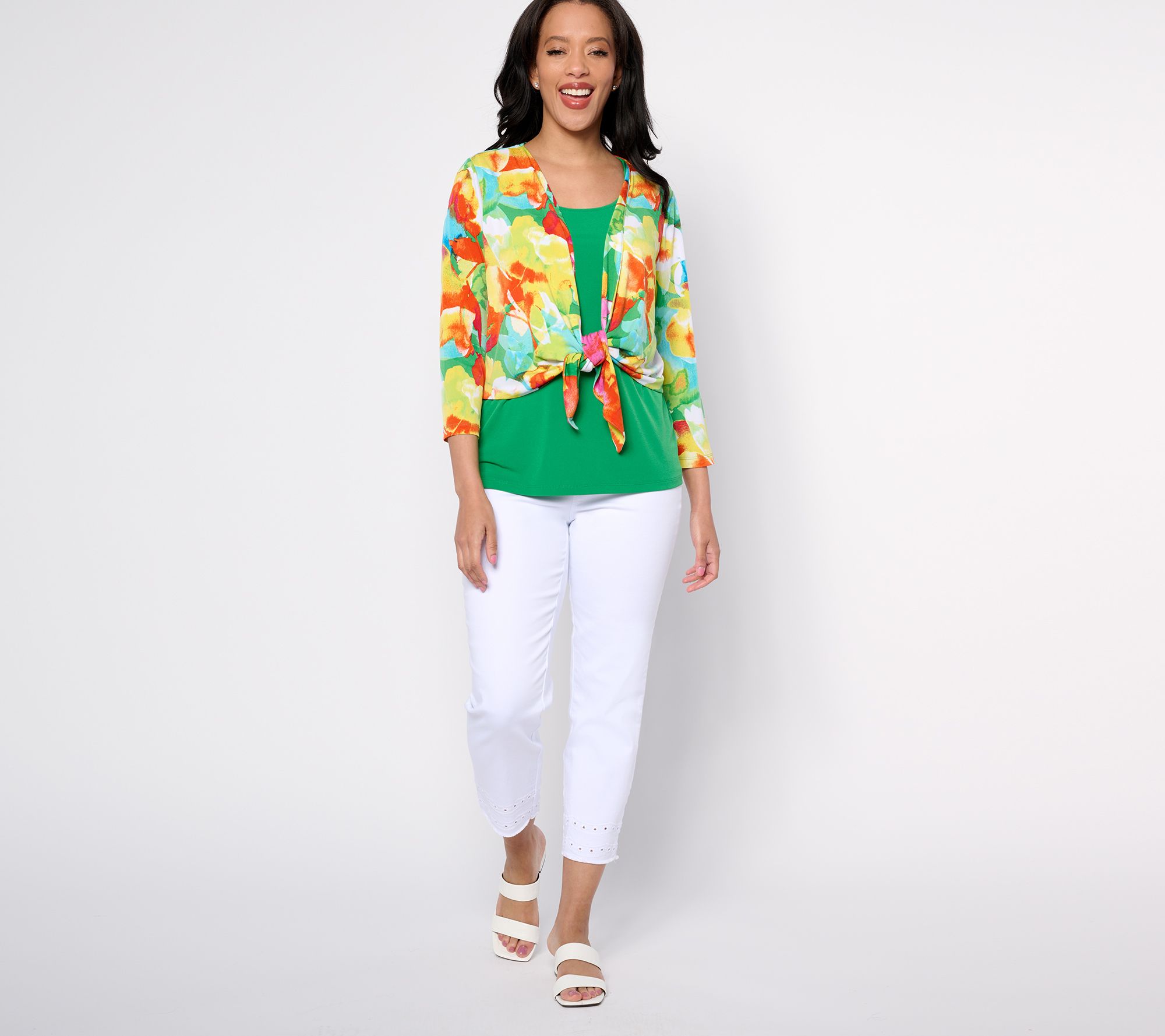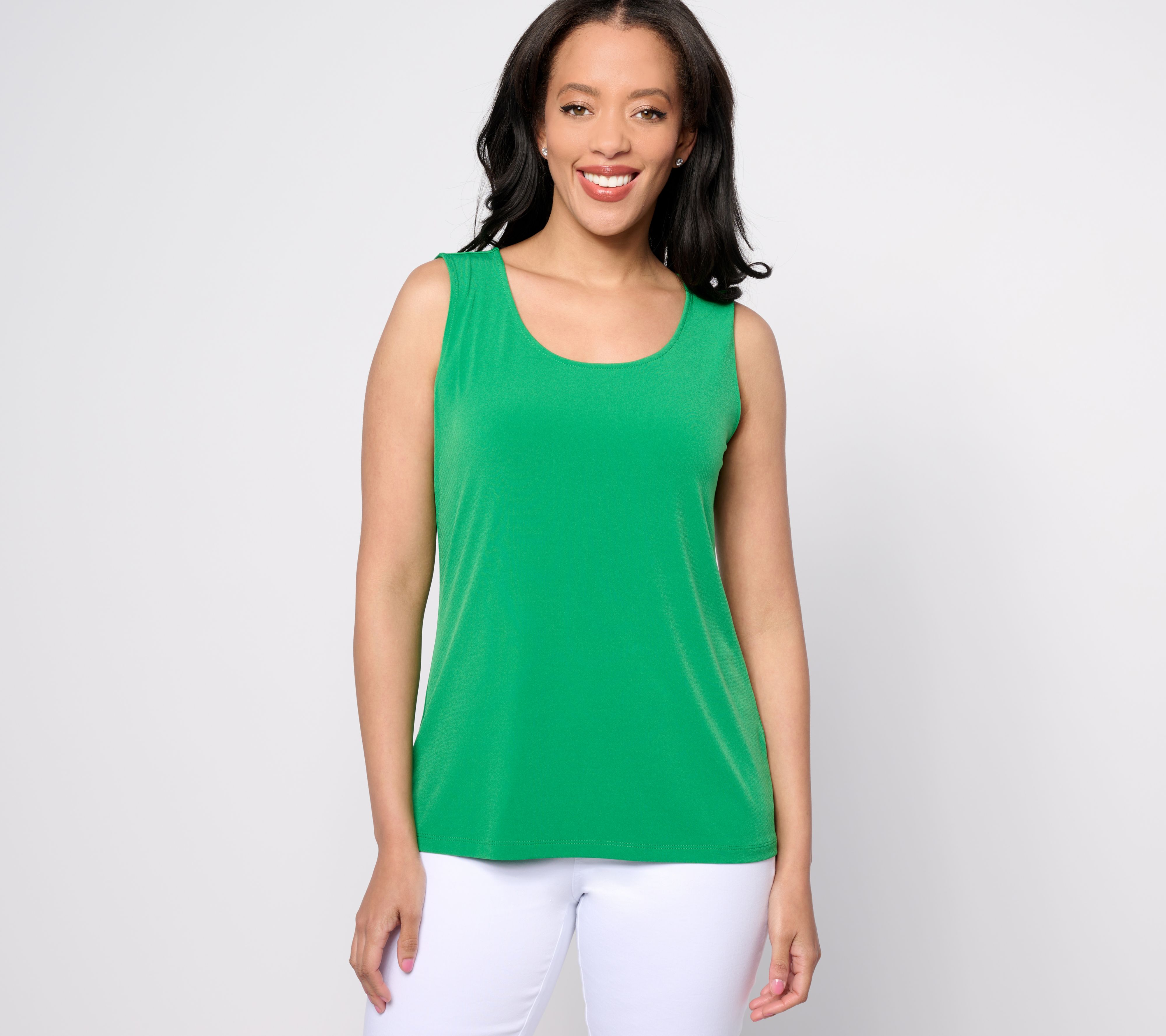 Feel free to mix and mingle in this Liquid Knit® tank top. Tie on the matching shrug for a lovely layered look. From Susan Graver.