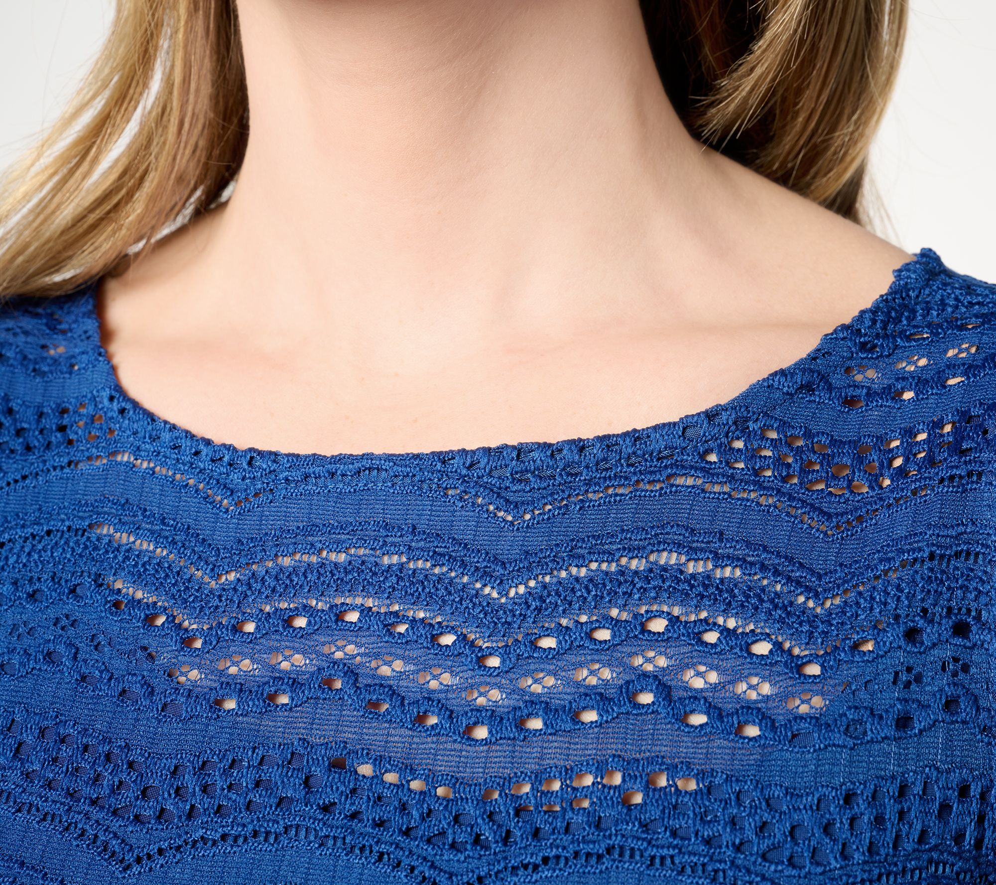 "As Is" Susan Graver Passport Reg Knit Crochet Lace Midi Dress