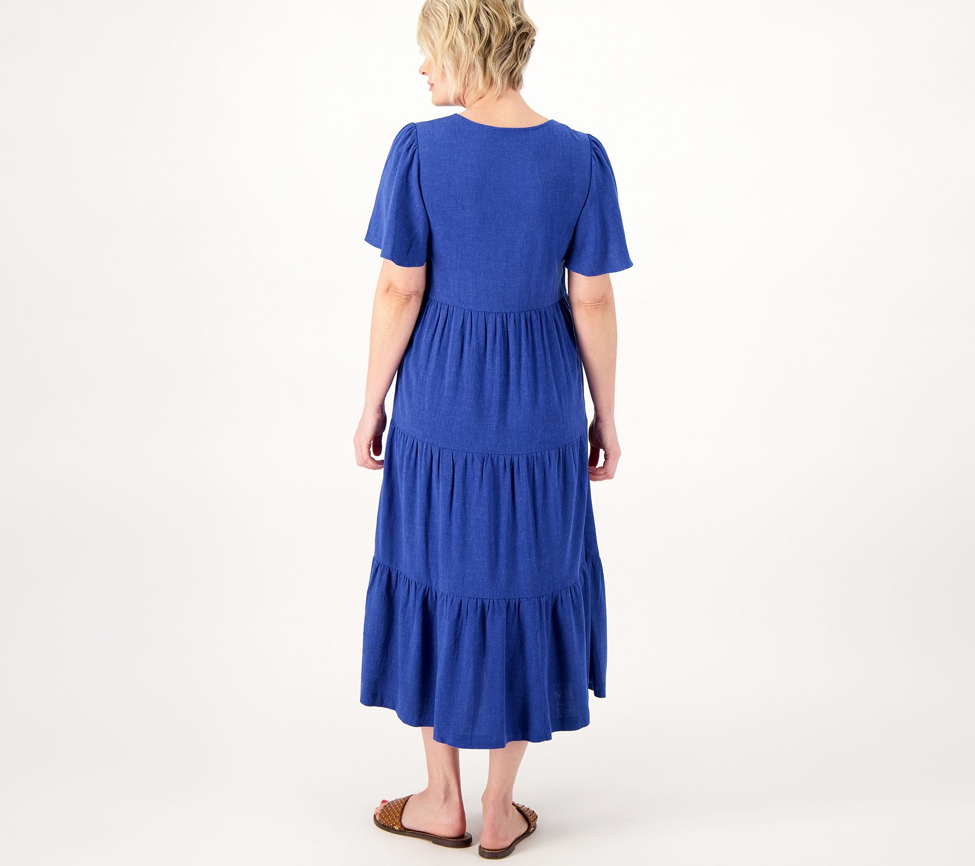 "As Is" Susan Graver Pet Pure Linen Blend Tiered Button- Front Midi
