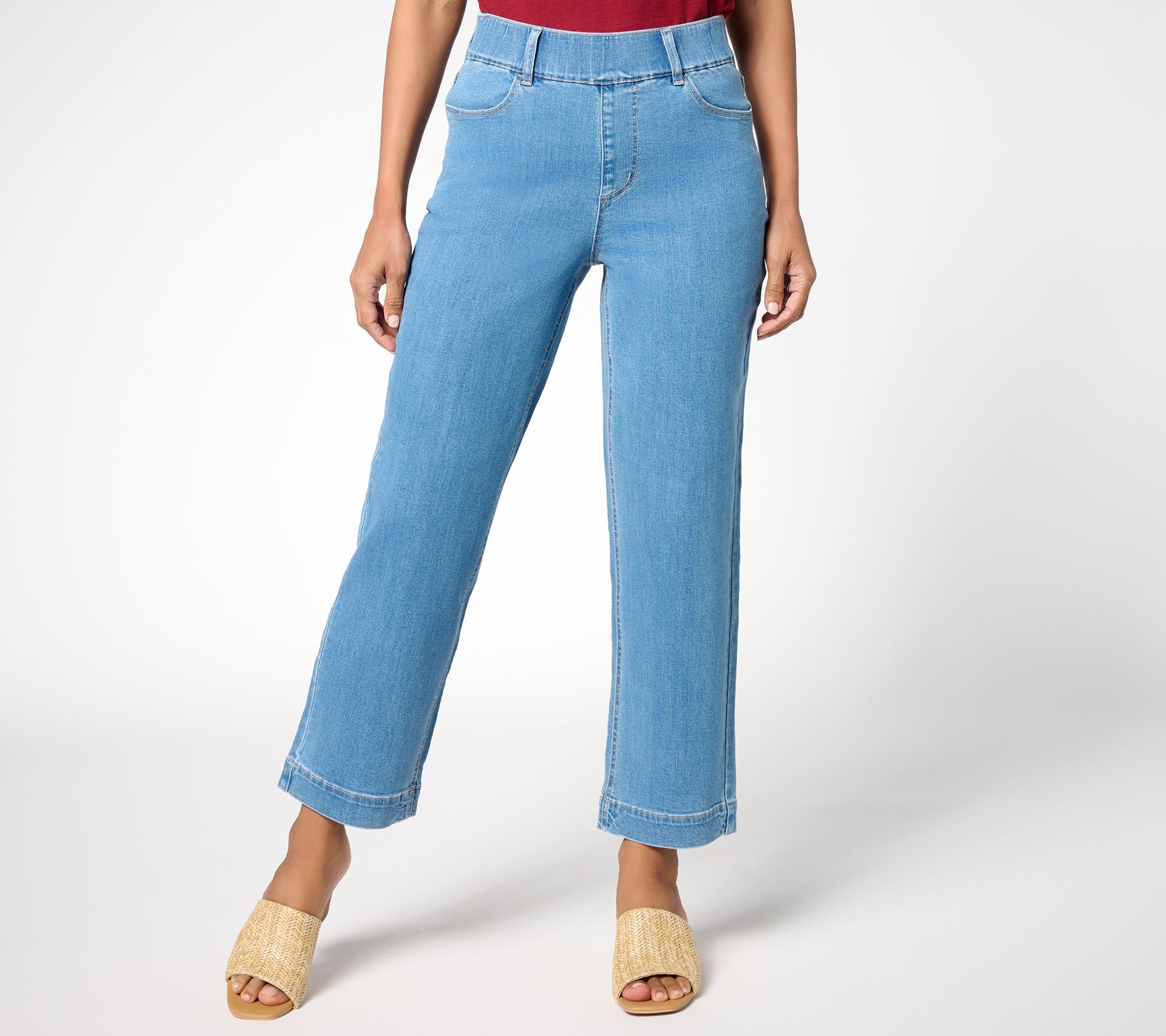 Who needs a zipper? Off-duty days or on-the-go errands call for a pair of stretch denim pants you can pull on and forget about -- while feeling totally cute. Wear the full-leg ankle style with a tucked-in tee or your favorite flowy top (and splashy sandals!) for a style that feels as easy as it looks. From Susan Graver.