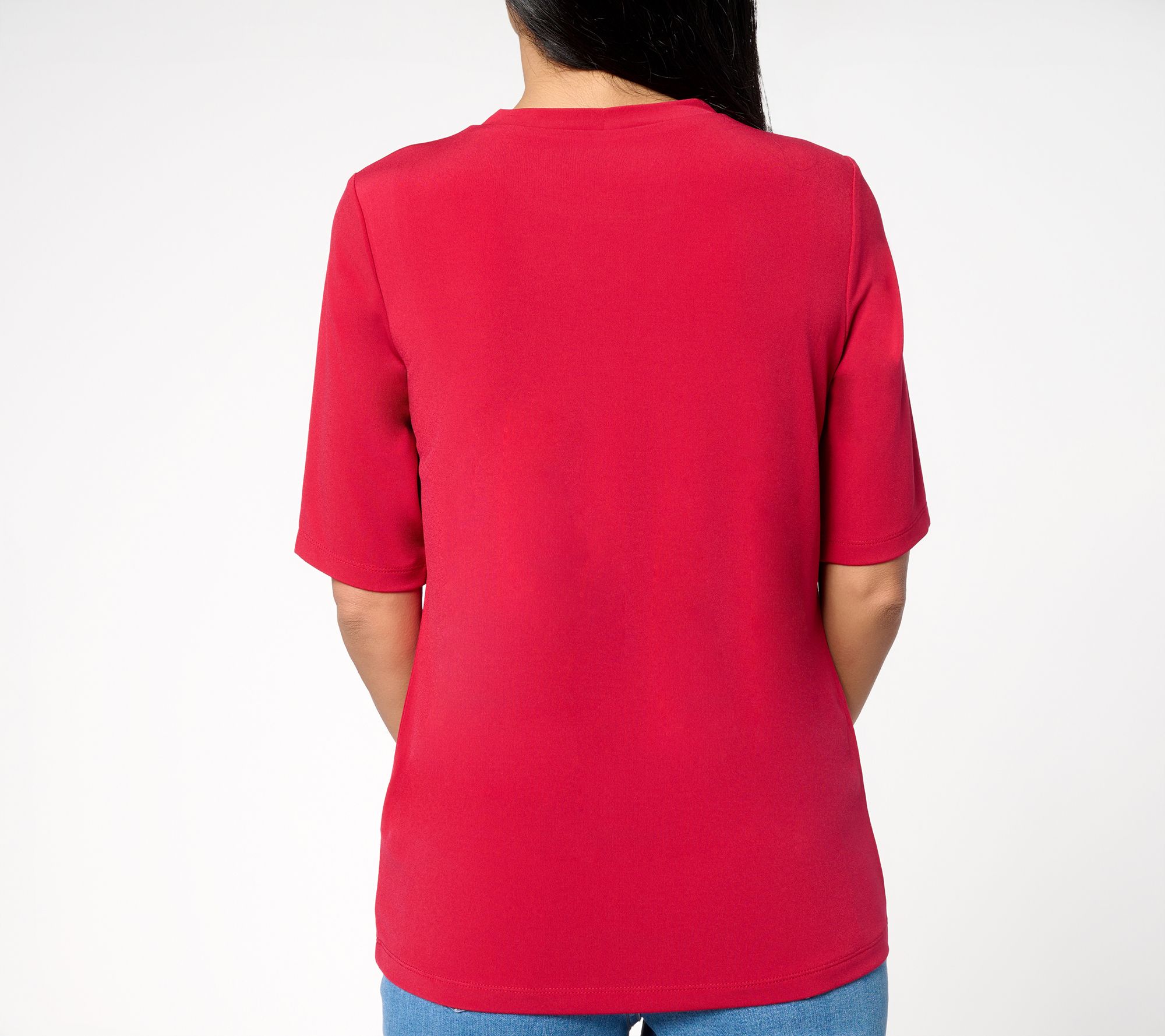 Ready to refresh your wardrobe staples? This Liquid Knit® crew-neck top brings classic style to any outfit with its sleek, solid-color design and signature silky comfort. The elbow-length sleeves and pullover style are just right for layering or standing out on its own -- making it a go-to piece from busy days to breezy evenings. From Susan Graver.