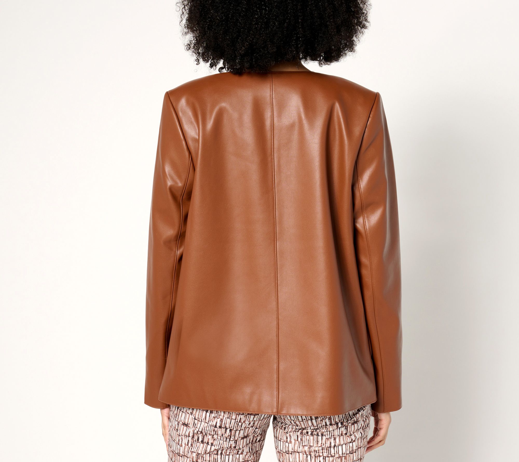 "As Is" Susan Graver Petite Faux Leather Jacket with Laser Detail
