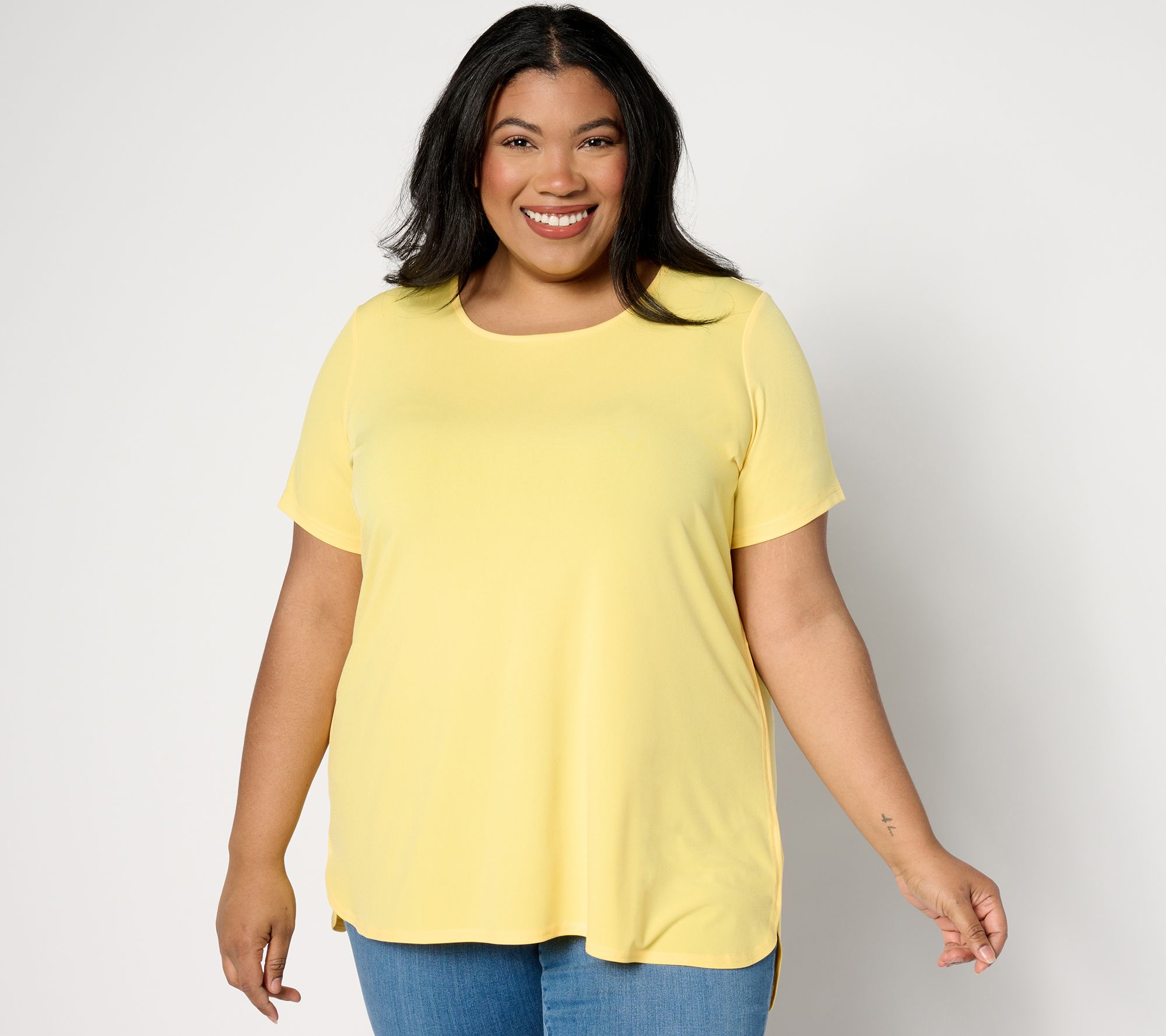 Freshen up your everyday options with this smoother-than-smooth Liquid Knit® tunic in a figure-flattering tulip hem. From Susan Graver.