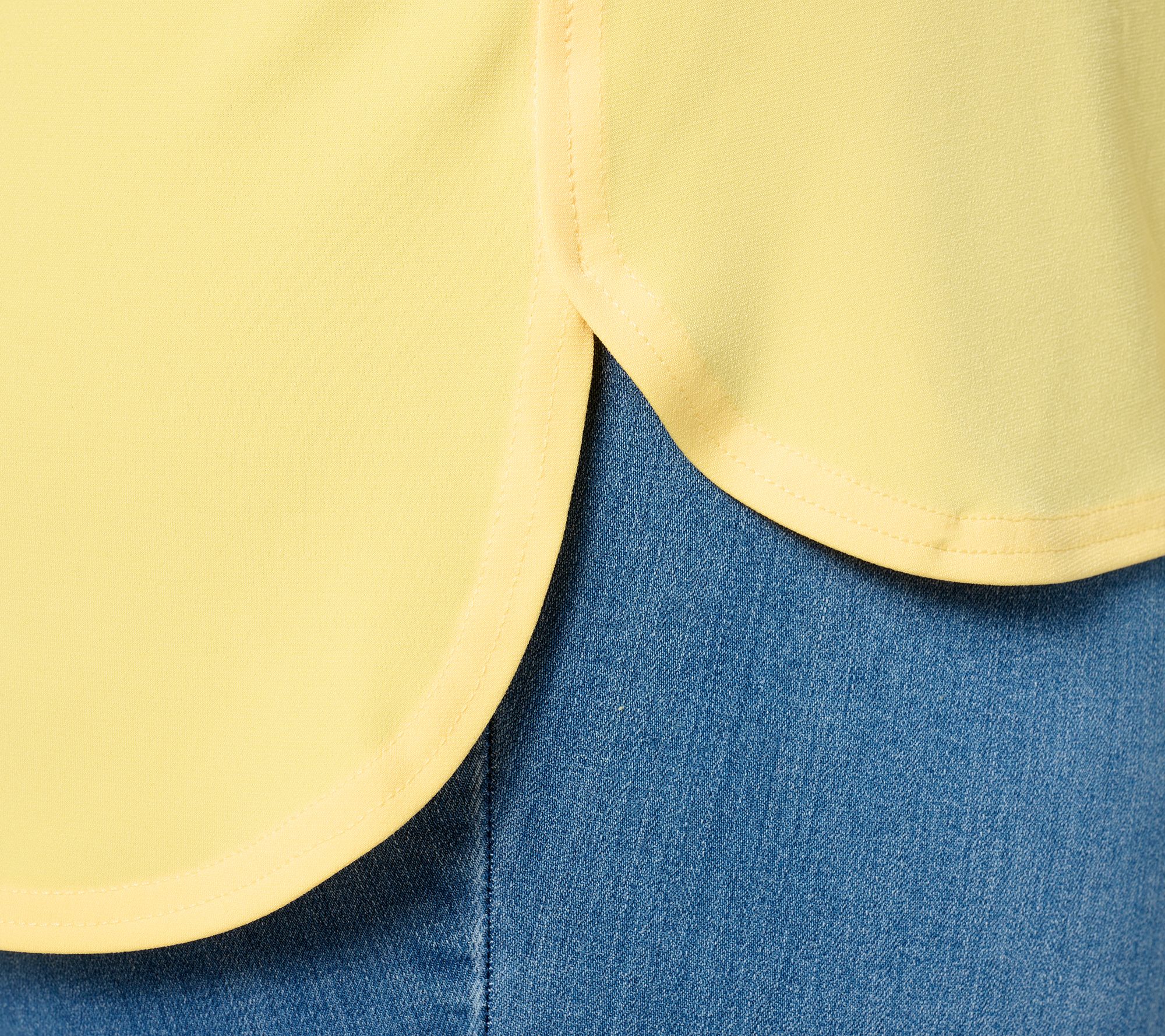 • Features: crew neckline, short sleeves, tulip hi-low hem