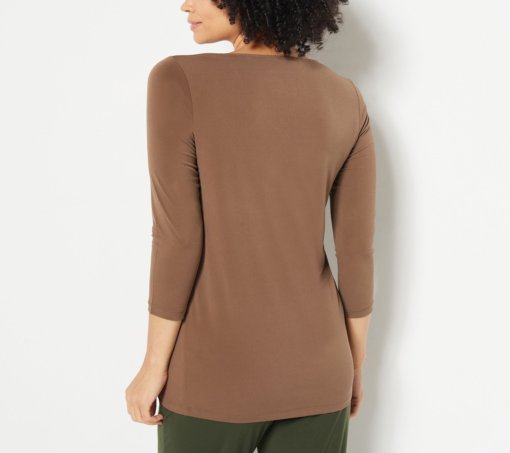 Features: 3/4-length sleeves; tunic length