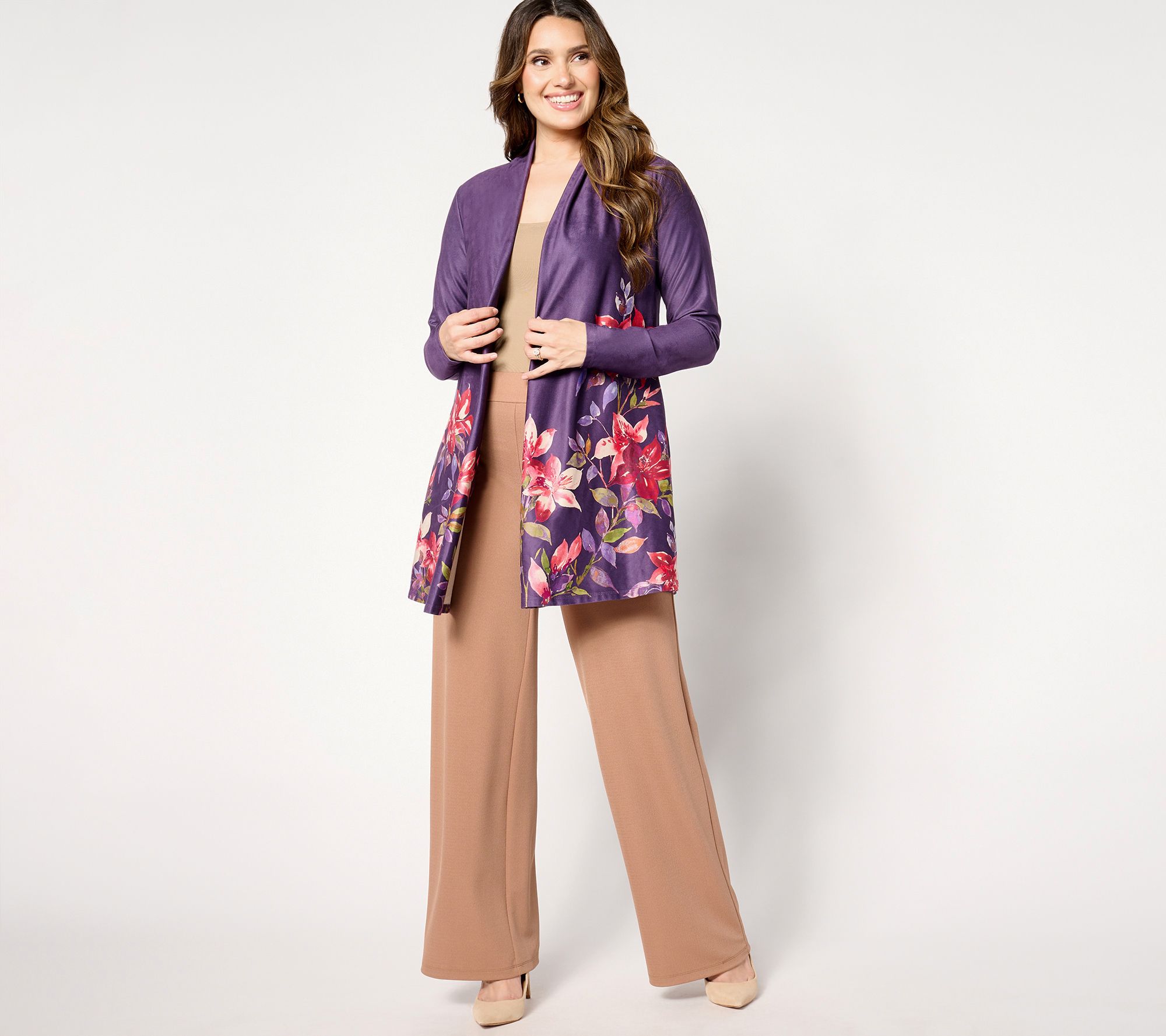 Hey, social butterflies! Be the life of the (garden) party throughout the year in this charmingly printed duster crafted in multi-season faux suede. From Susan Graver.
