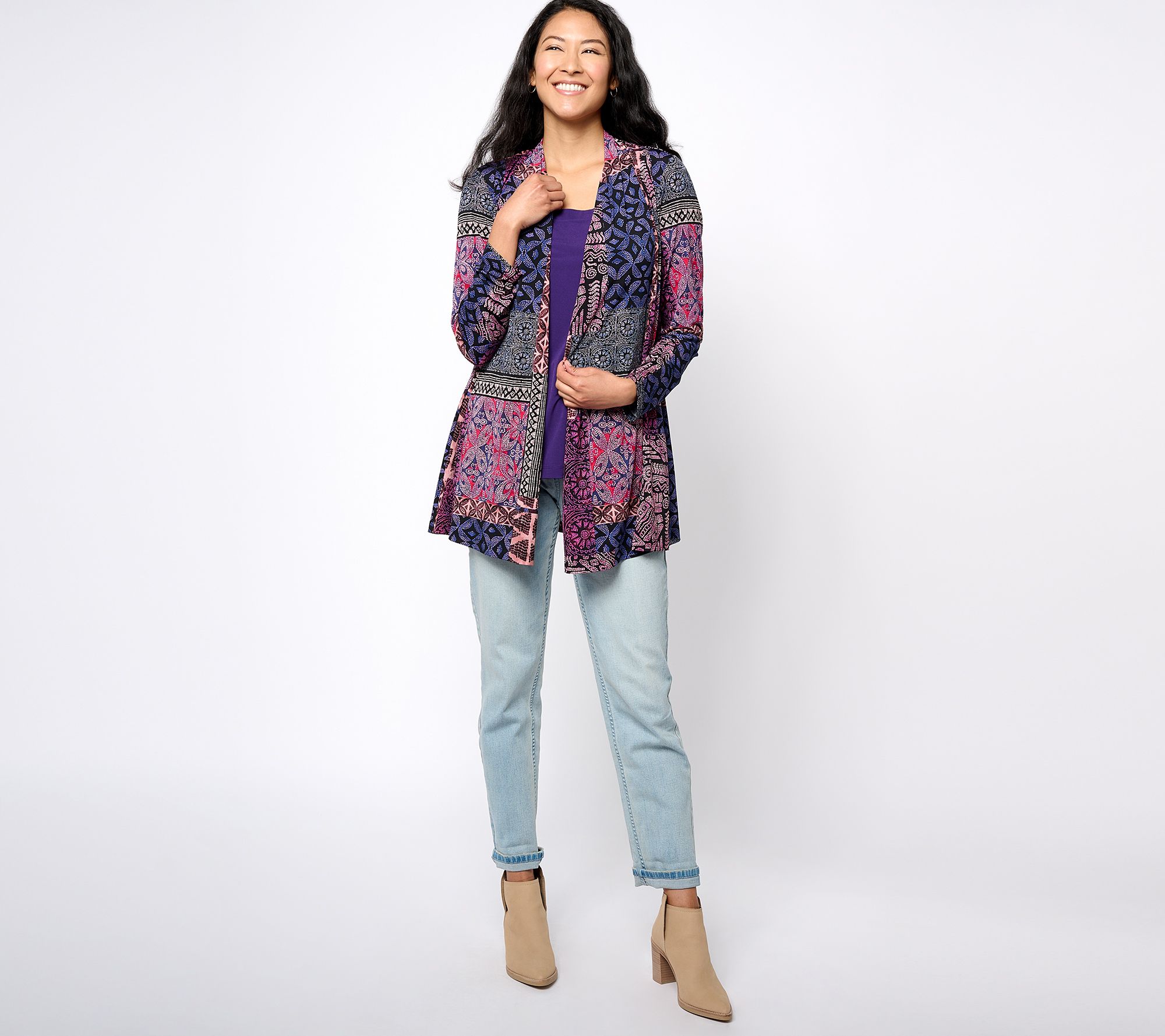 "As Is" Susan Graver Petite Printed Liquid Knit Cardigan & Solid Tank Set