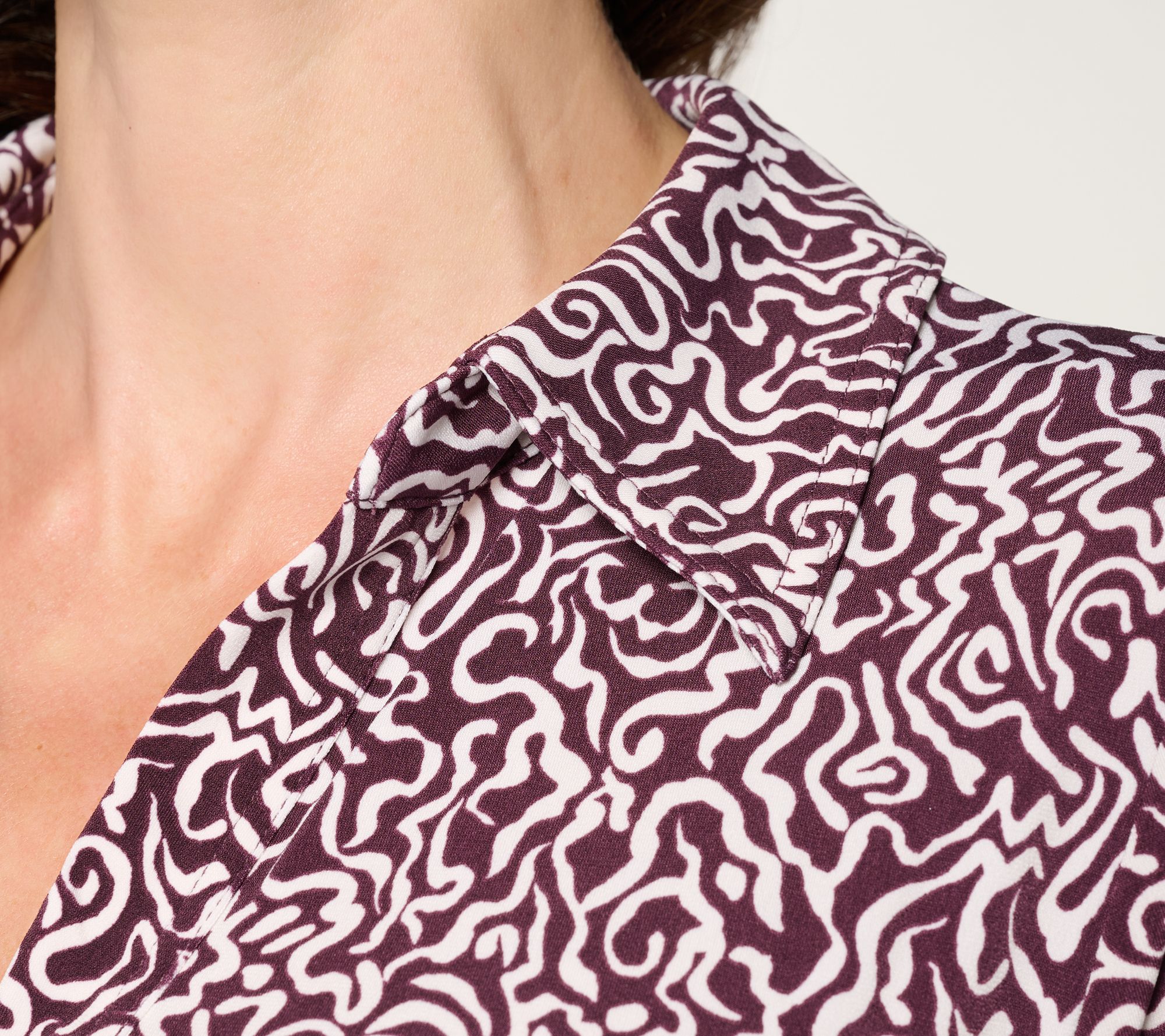 "As Is" Susan Graver Petite Printed Liquid Knit Collared Midi Dress