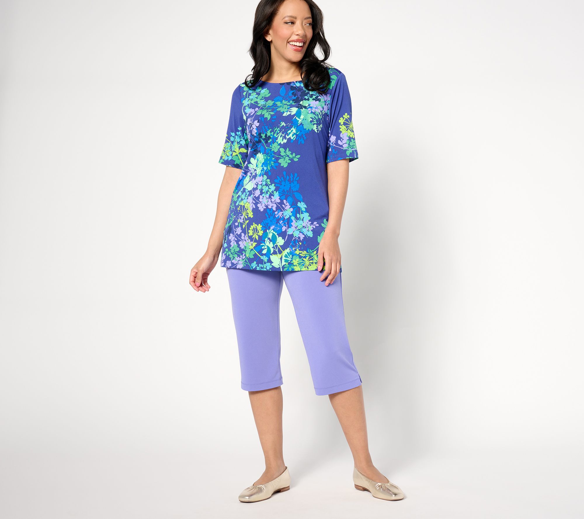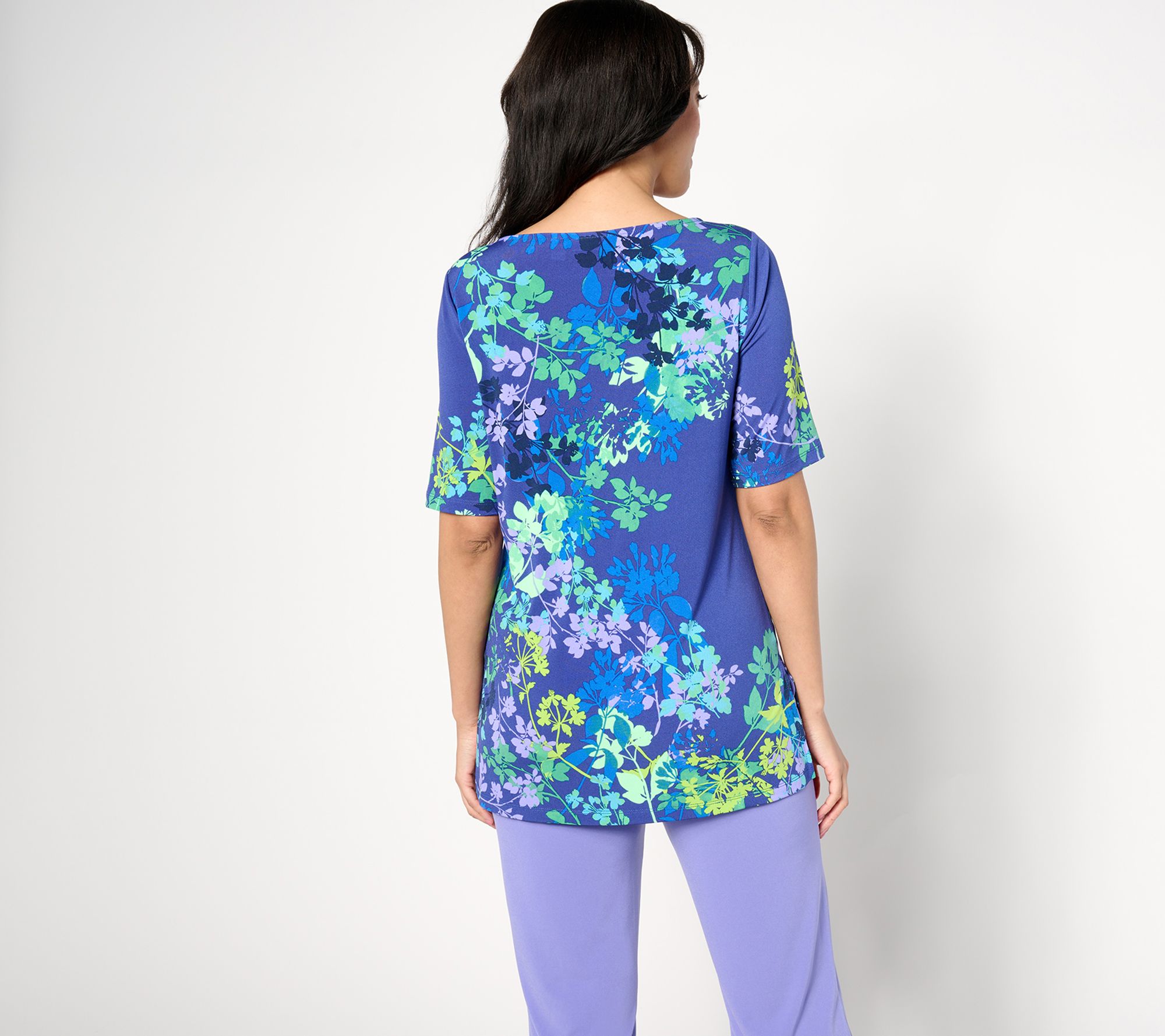 Visiting a childhood friend? Meeting a new addition to the family? Celebrating a grad, dad, or mom? Let your style reflect your gratitude for the moment in this elegantly printed top in ultra-wearable Liquid Knit®. From Susan Graver.