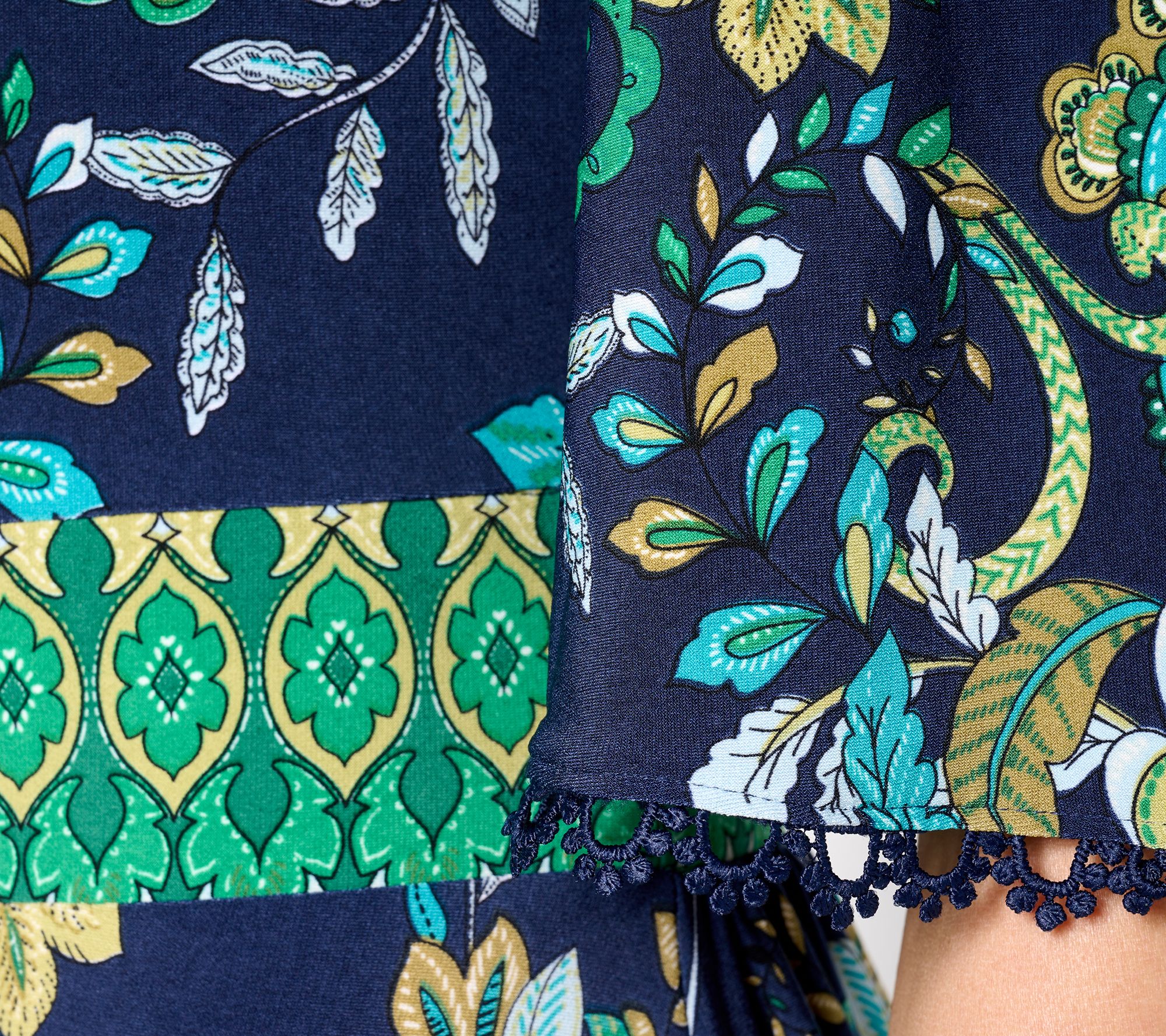A Liquid Knit® hit for weddings, work events, or evening celebrations under the stars, this dress spotlights a motif print and elegant details that make it a crowd-pleaser -- and so pretty for posting! And that comfortable coverage-providing mock neck? It makes it a self-pleaser. From Susan Graver.