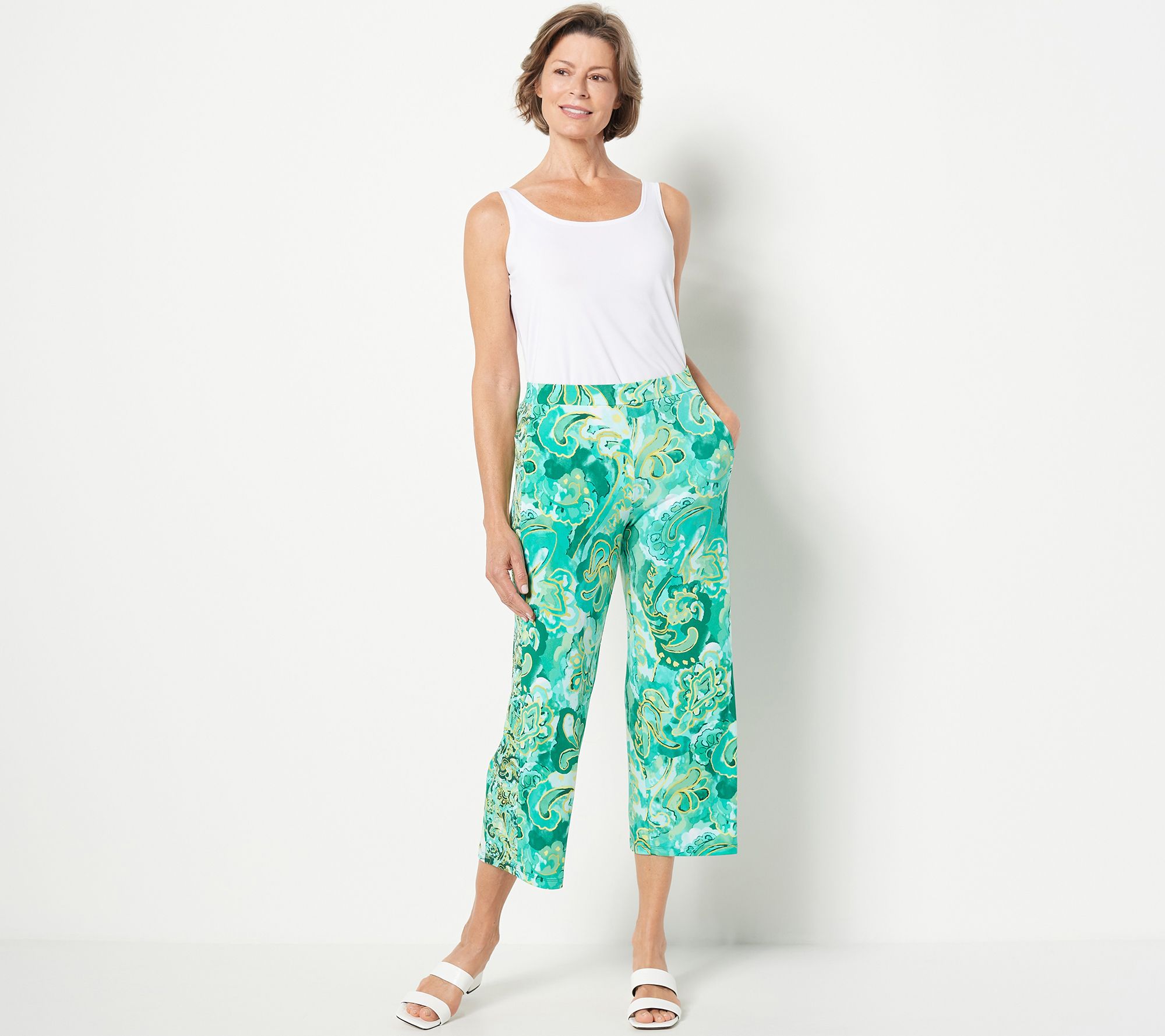 "As Is" Susan Graver Petite Printed Liquid Knit Pull-On Crop Pants
