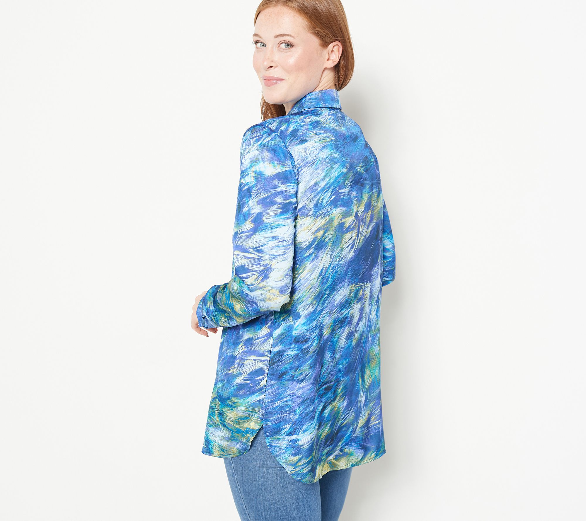"As Is" Susan Graver Petite Printed Stretch Charmeuse Big Shirt