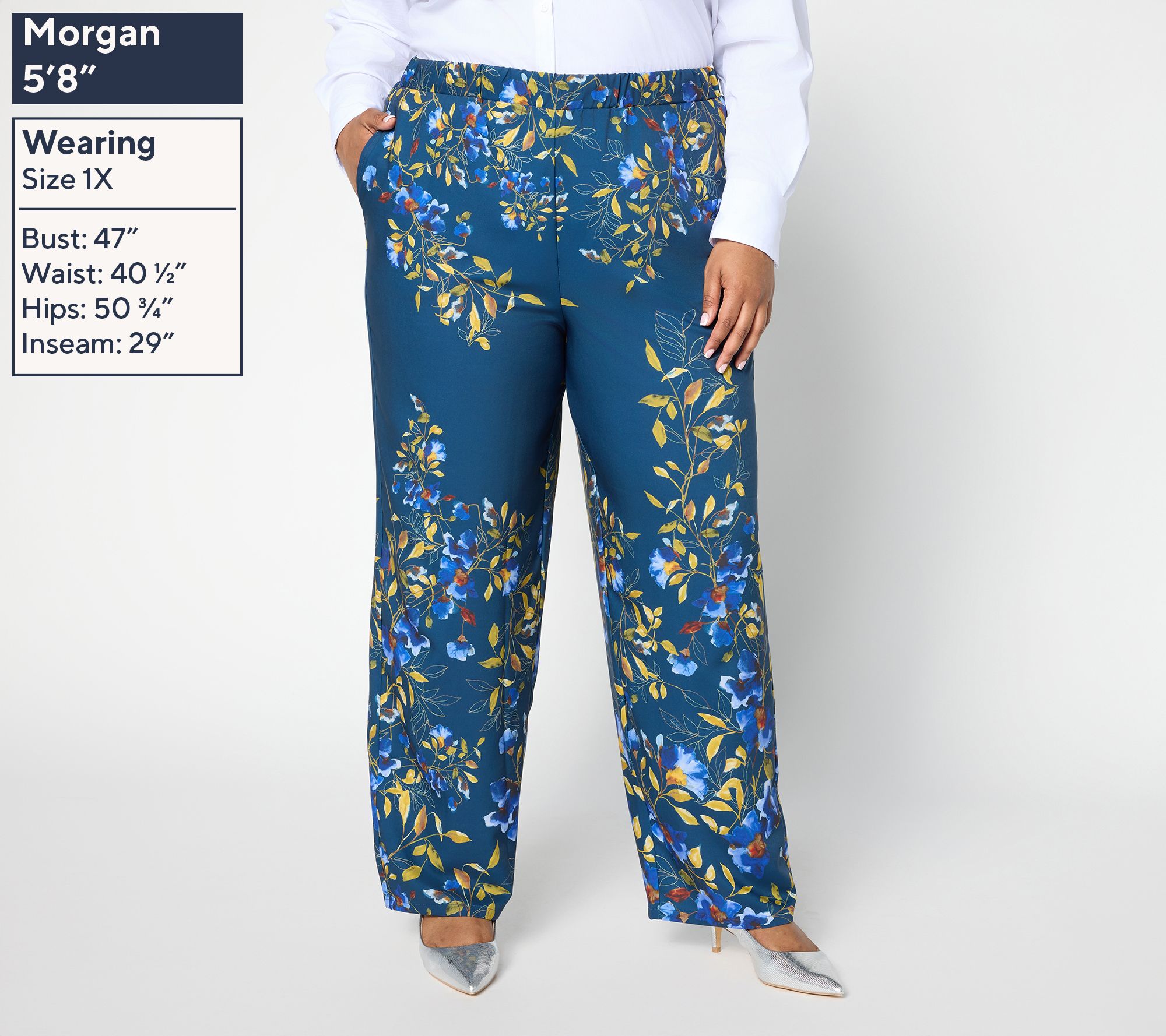 Impromptu plans? Easily pivot your 'fit by slipping into these stretch twill wide-leg pants -- and be on your way! Their playful print and pull-on ease make for standout style and fuss-free dressing to keep up with your ever-changing agenda. From Susan Graver.